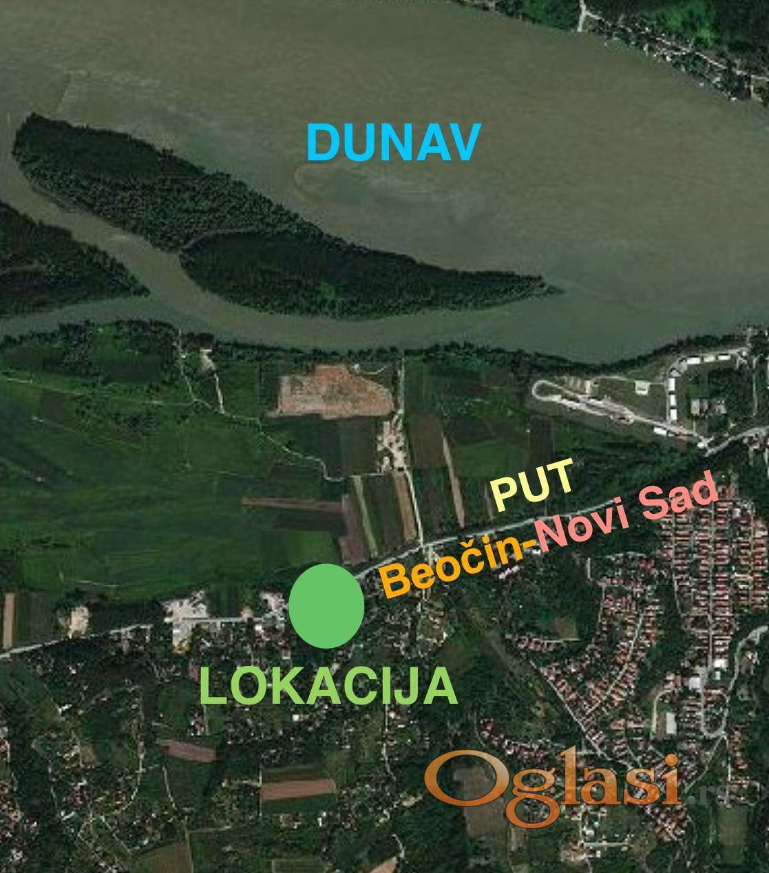Gradjevinski plac na glavnom putu BEOČIN - NOVI SAD, udaljen 7km (9min).