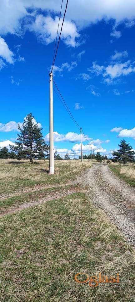 Struja na placu, voda u blizini, makadamski put pored placa, borovi posadjeni na placu.