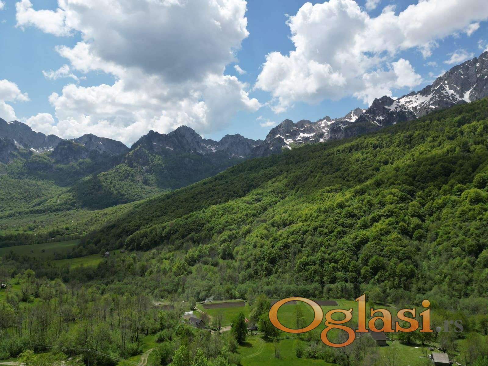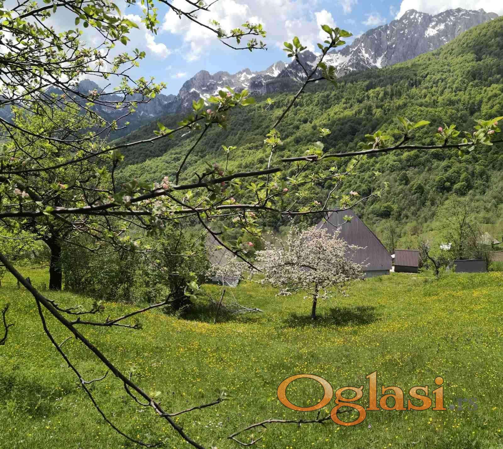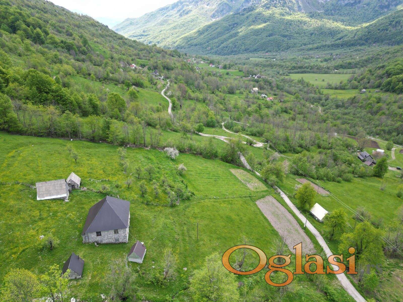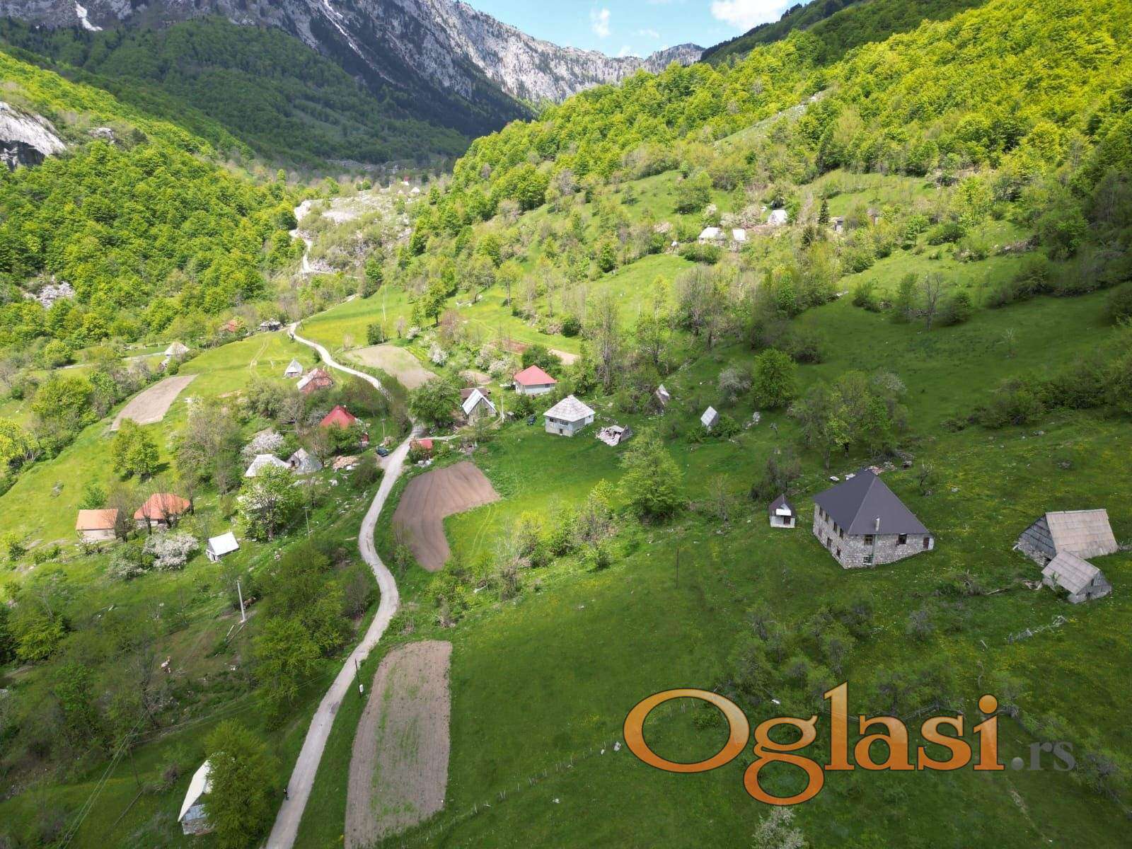 Parcela je ravna, s blagim nagibom. Panoramski pogled na planine i dolinu.