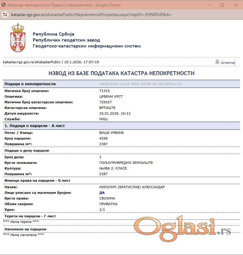 Hit ponuda- Plac 24 ara kod Niša (Vrtište) POVOLJNO