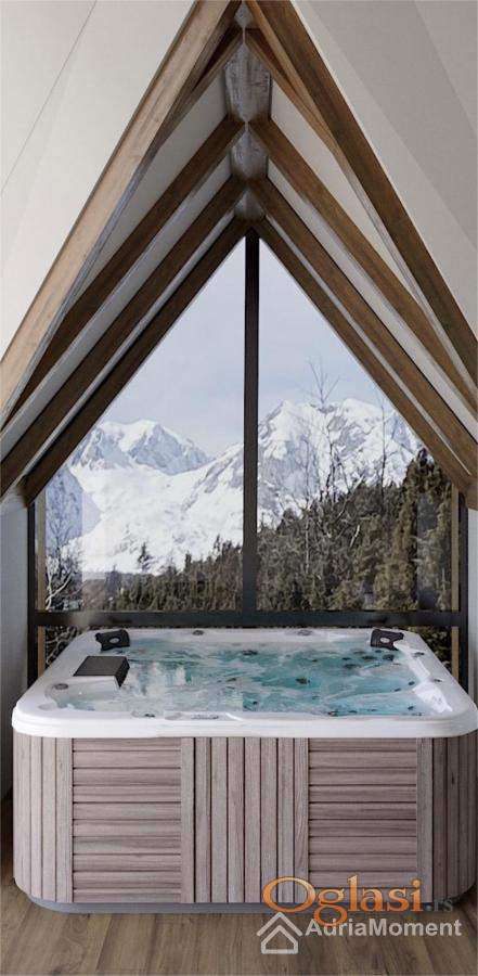 Dvije spavaće sobe s dvije kupaonice, dnevni boravak, kuhinja s blagovaonicom, hodnik, pomoćna prostorija/spremište, jacuzzi, sauna.