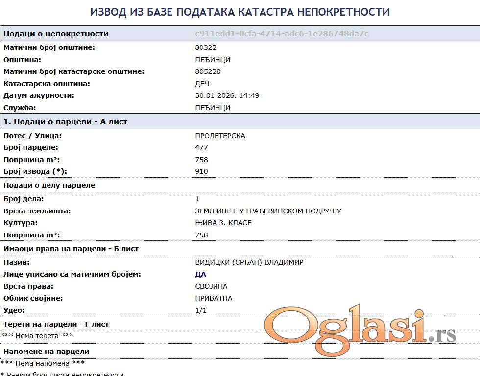 Na prodaju građevinski plac broj parcele 477, površine 7,58 ari, u mirnom i uređenom kraju, u blizini autoputa, što obezbeđuje odličnu povezanost i brz pristup gradu.
