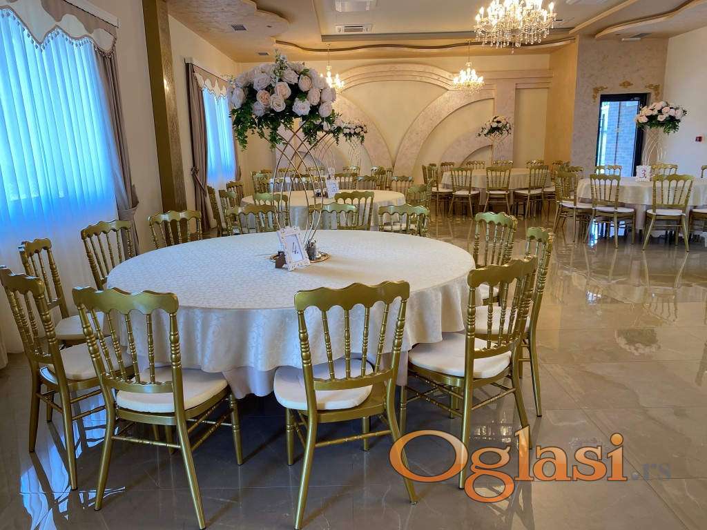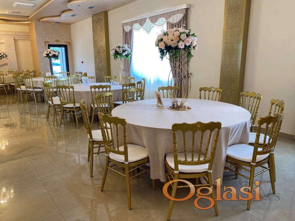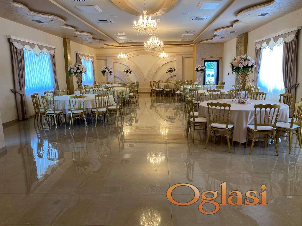 Sala površine 156 m² odiše luksuzom, vrhunskim enterijerom i prostranošću, i može da ugosti do 180 gostiju, što je čini idealnom za svadbe, korporativne događaje, proslave i sve vrste svečanosti. Svaki detalj je urađen sa pažnjom – od visokokvalitetnih završnih radova do atmosfere koja ostavlja bez daha.