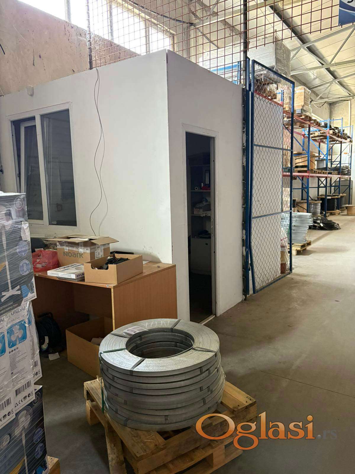 Visina plafona samog objekta je izmedju 7-8 metara (najviša tačka 8,14m). Magacin je izuzetno prostran i može da primi veliku količinu robe. Unutar objekta nalaze se dve kancelarije, jedna veća u koju može da stane okvirno pet zaposlenih, i jedna manja u koju staje dvoje zaposlenih (za prijem robe recimo). Magacin poseduje dva sanitarna čvora i kuhinju sa prostorom za ručavanje.