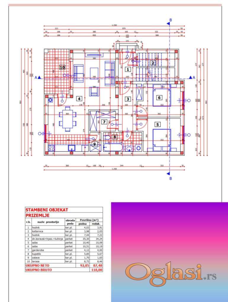 bruto površine 235m2,neto 181m2 na placu od 408m2