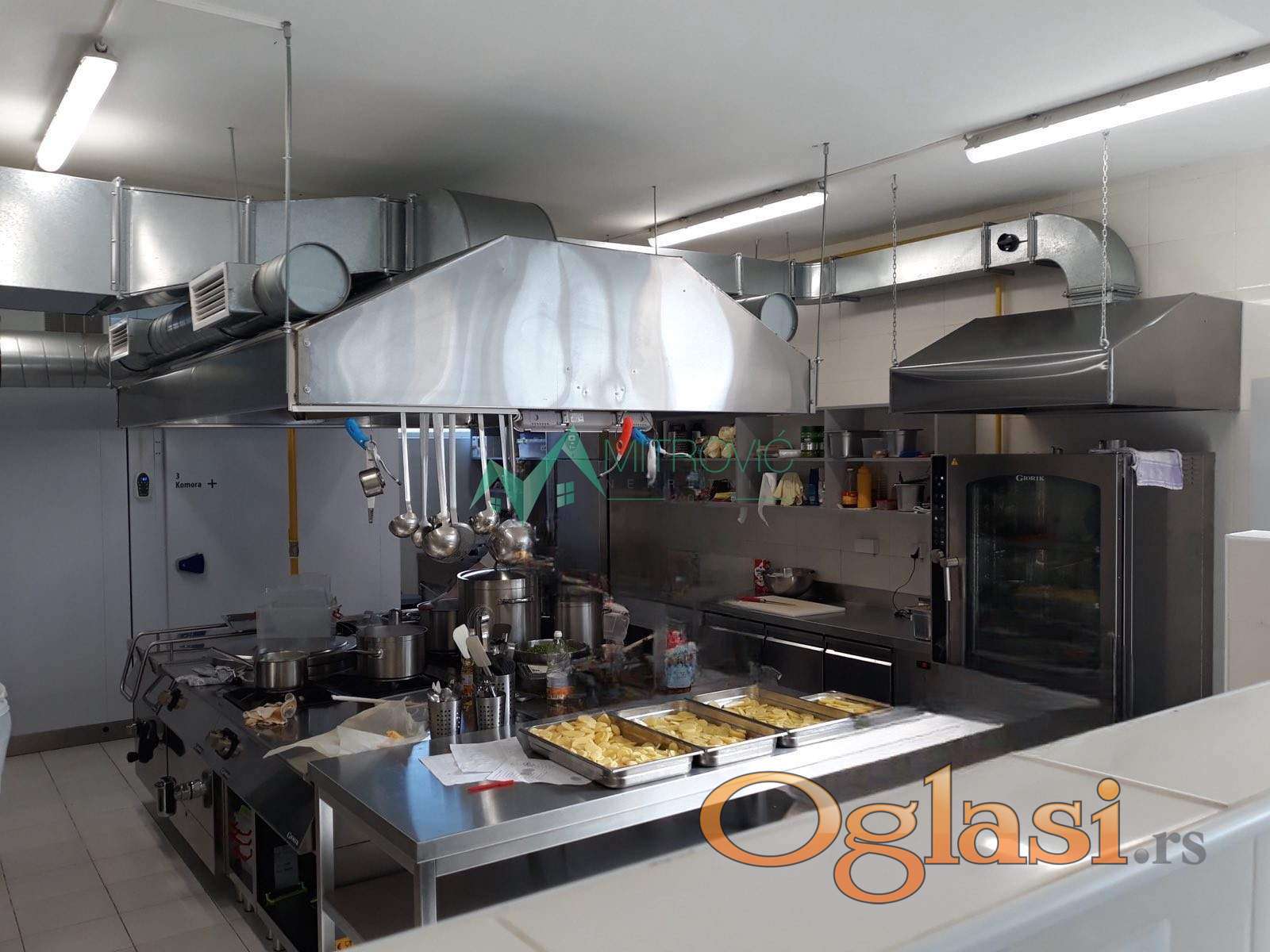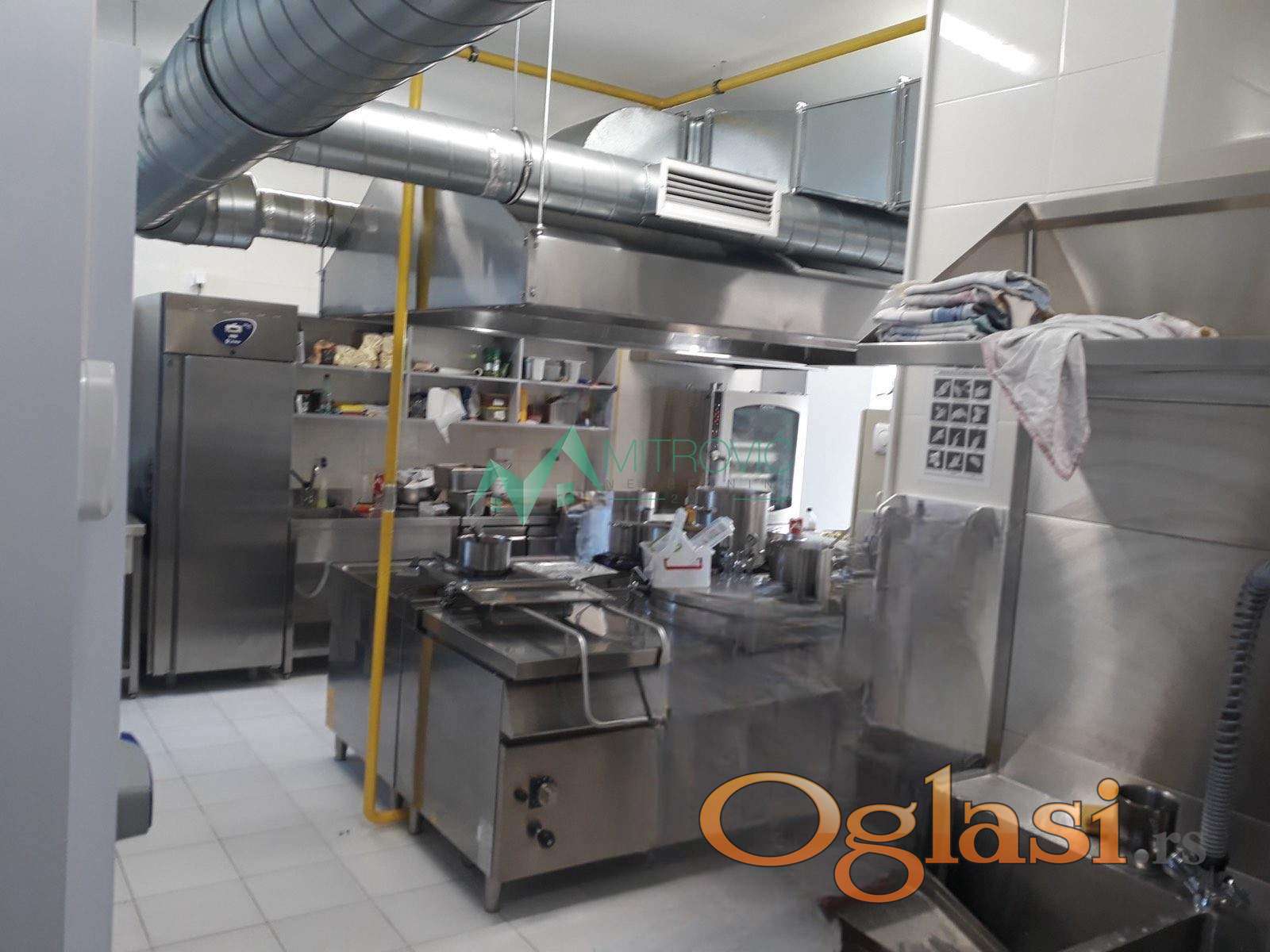 U pitanju je poslovni prostor u kojem se nalazi kuhinja jedne kompanije i u kojem je uveden HASAP tako da poslovni prostor poseduje industrijski priključak gasa i struje i separator otpadnih masti. Sva oprema za pripremu i čuvanje hrane koju možete videti na fotografijama pripada zakupcu. Podno grejanje, ploćice do plafona, alu stolarija.
