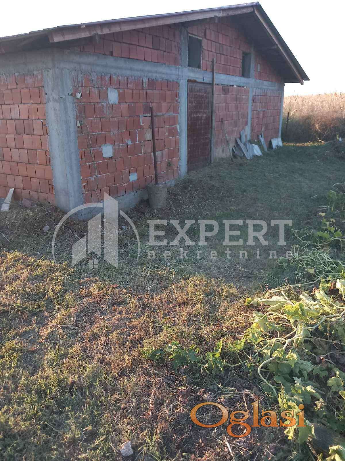 Objekat je napravljen od čvrstog materijala, površine 412 m2, visine 3.6 metara, nalazi se na placu od 13 ara. Voda je bunarska(hidrofor). Unutra je malterisan, spolja samo prednja strana malterisana, ostalo nije. Trenutno postoji privremeni priključak za struju (podnet zahtev za strujomer).