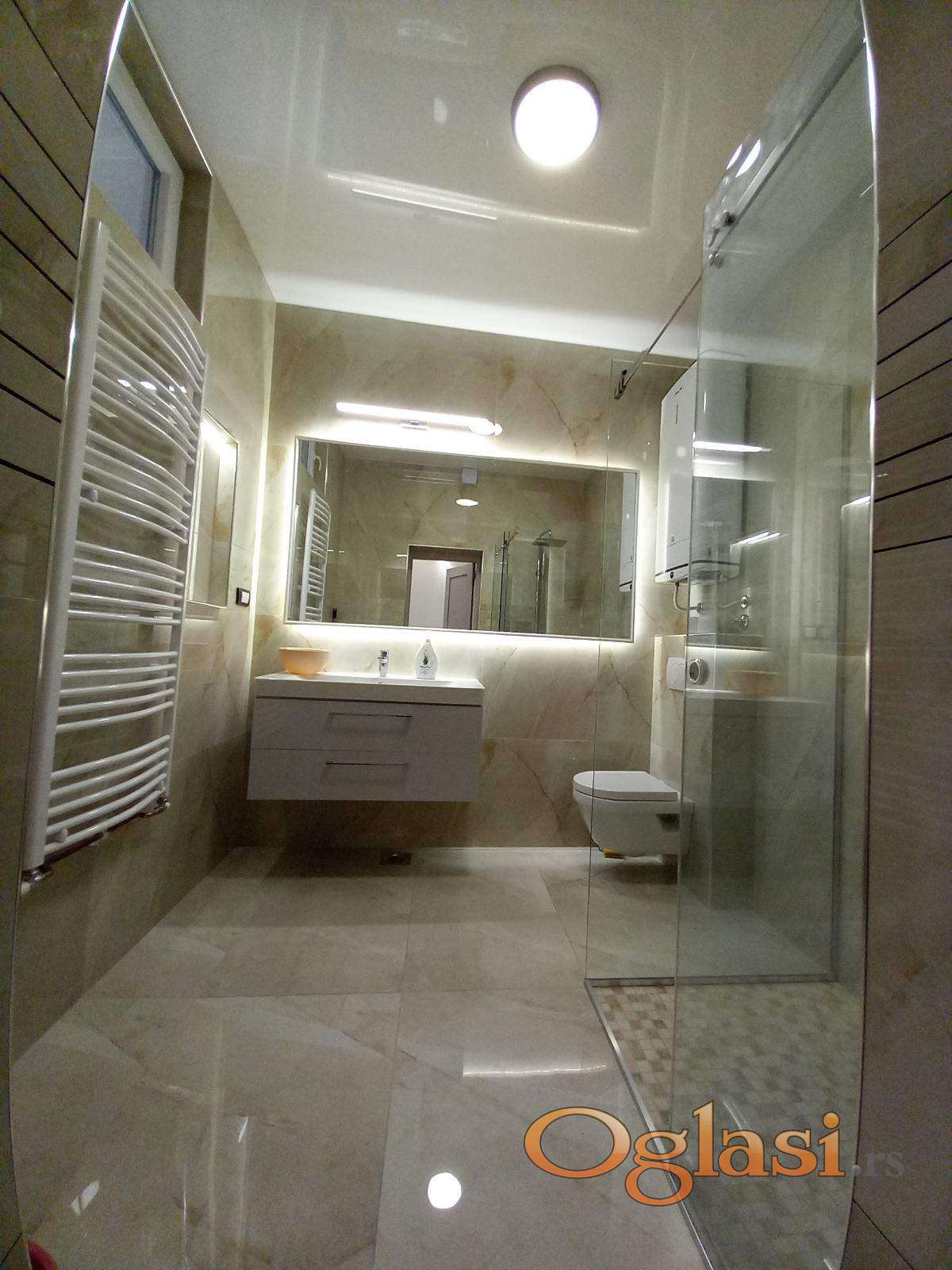 Podovi: Granitne pločice velikog formata (120x60) koje prostoru daju dodatnu prostranost i eleganciju.
