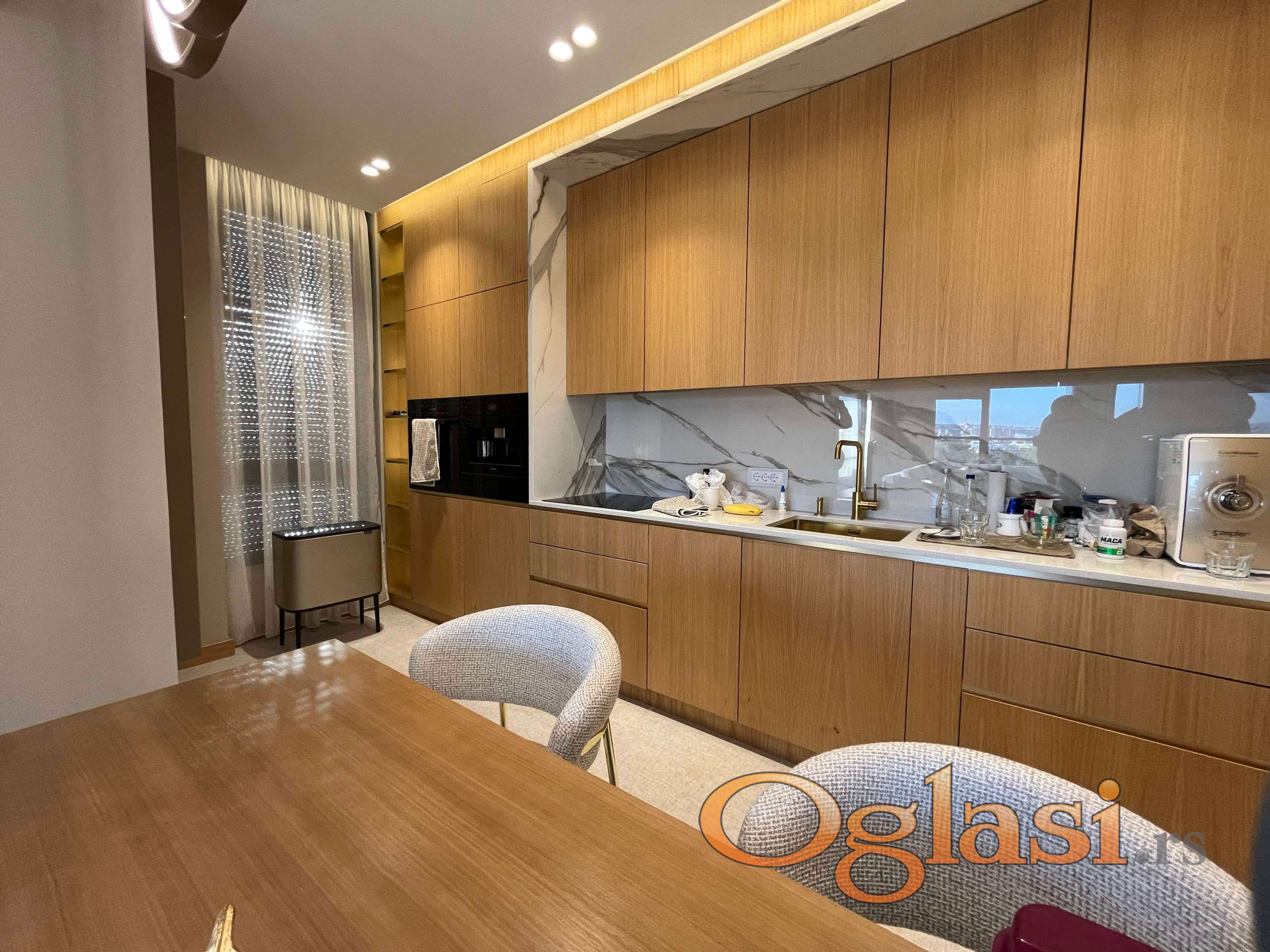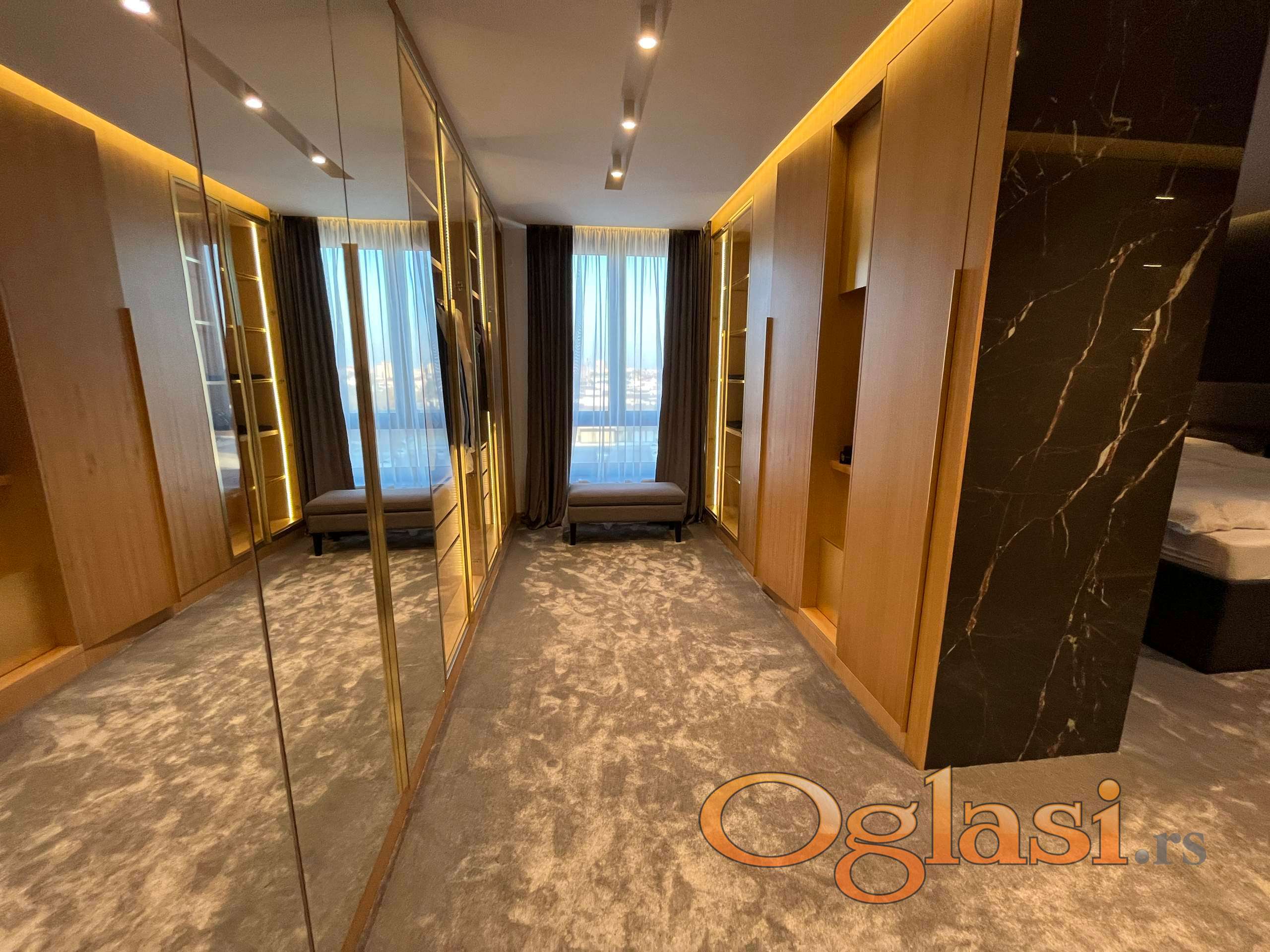 Prodaje se LUX penthouse, površine 141m2 na atraktivnoj lokaciji, ekskluzivno opremljen, uređen dizajnerski. Stan se prodaje kompletno opremljen sa svim nameštajem. Zaista vredi pogledati. Stan se sastoji iz hodnika iz kojeg se ulazi u sve prostorije, dečija soba, spavaća soba, garderober soba, dva kupatila, veliki dnevni boravak sa trpezarijom i kuhinjom i izlazom na veliku terasu koja se prostire oko celog stana. Grejanje na kalorimetre, plaća se po utrošku. Sve bela tehnika u stanu je marke Miele. Stan poseduje svoja dva garažna i dva parking mesta i dva podruma. Zgrada poseduje energetski pasoš i sve je pod garancijom. Stan se nalazi u novoj zgradi koja je sagrađena po najnovijim evropskim standardima.