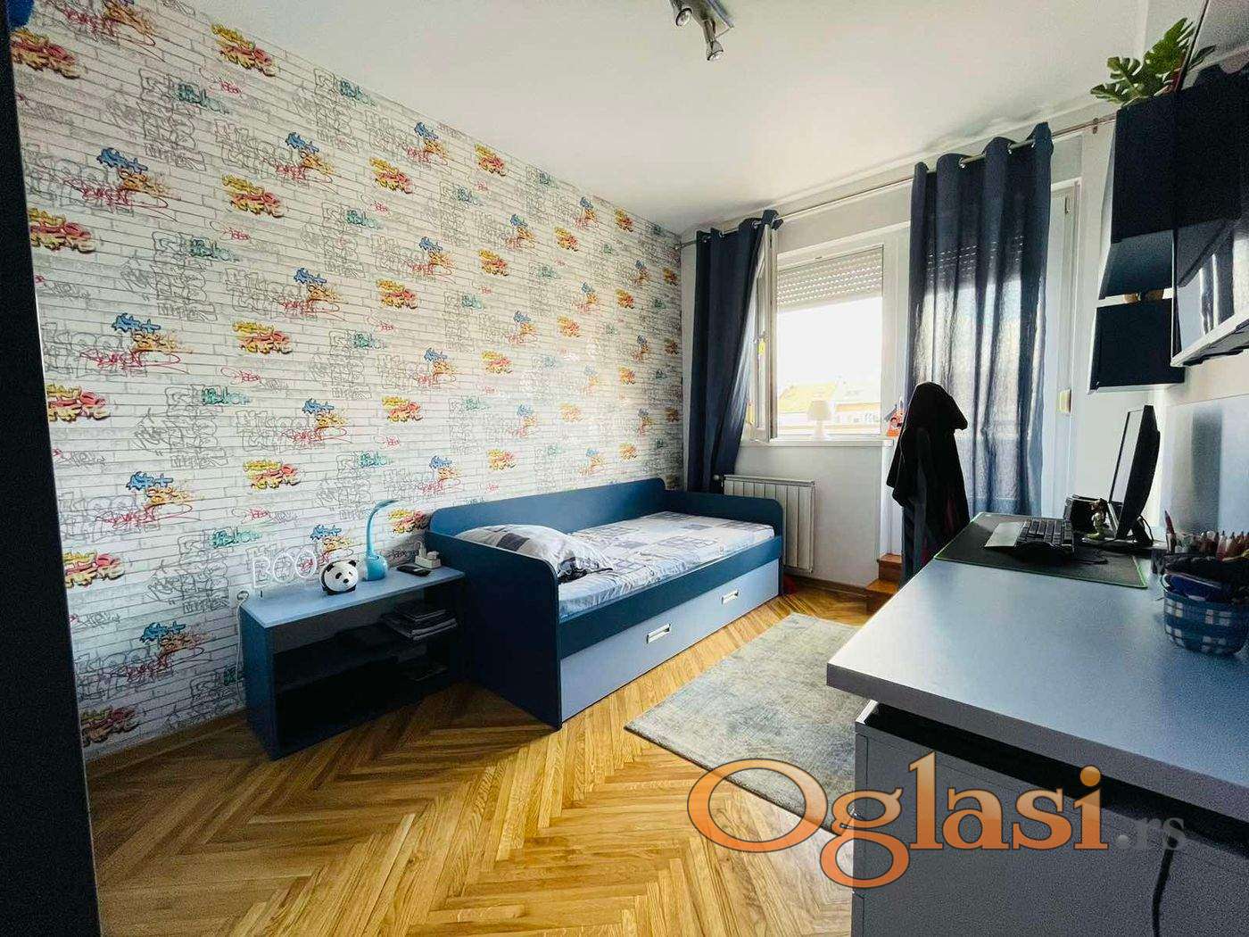 Odlična nekretnina, na izuzetno mirnoj lokaciji sa parkom i igralištem u dvorištu. U neposrednoj blizini je autobuska stanica, velike prodavnice, škole i vrtići. Ispred zgrade veliki parking van zone koji je na raspolaganju Vašim gostima i Vama. Ovaj stan je kompletno renoviran i ne zahteva apsolutno nikakva ulaganja. Stan možete kupiti i namešten kao na slikama uz dogovor sa prodavcem.