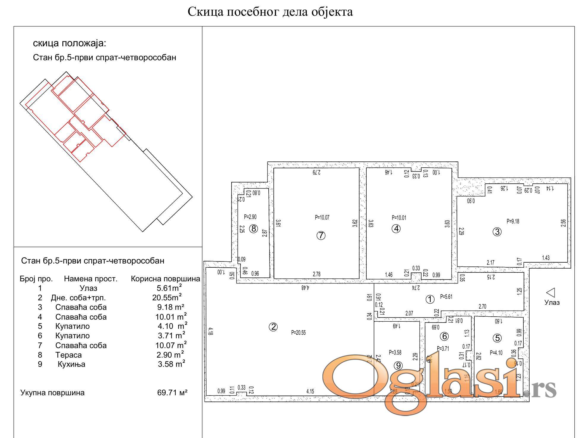 STAN etažirane površine 69,71 m2, na prvom spratu, četvorosoban.