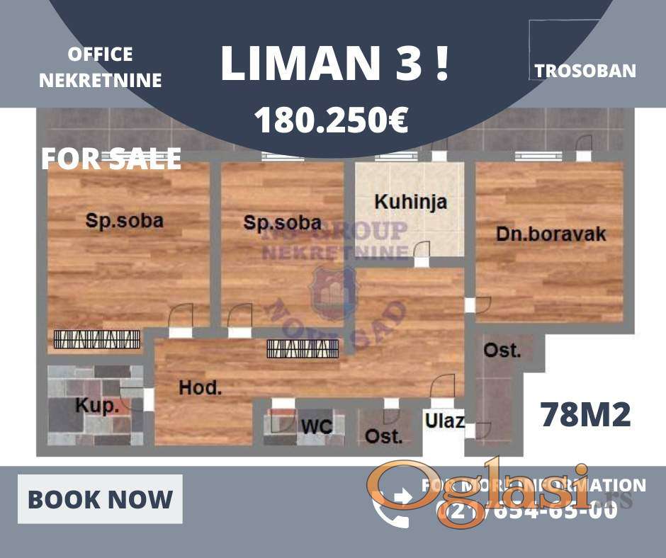 Uknjižena nekretnina na potezu Liman 3. Poznat kvalitet starogradnje sa odličnim rasporedom prostorija. Stan je dvorišno orijentisan sa fantastičnom terasom od cca 30m2. Bez buke puno parkinga i zelenila. Stan poseduje dva mokra čvora i pripadajuću ostavu od cca 5m2. Sav neophodan sadržaj za moderan zivot u blizini; u vidu: škola, pijace, marketa, supermarketa itd... Stan kakav se retko nalazi u ponudi !!! VREDAN PAŽNJE !!! Za više inforamcija i gledanje stana nas kontaktirajte. #1