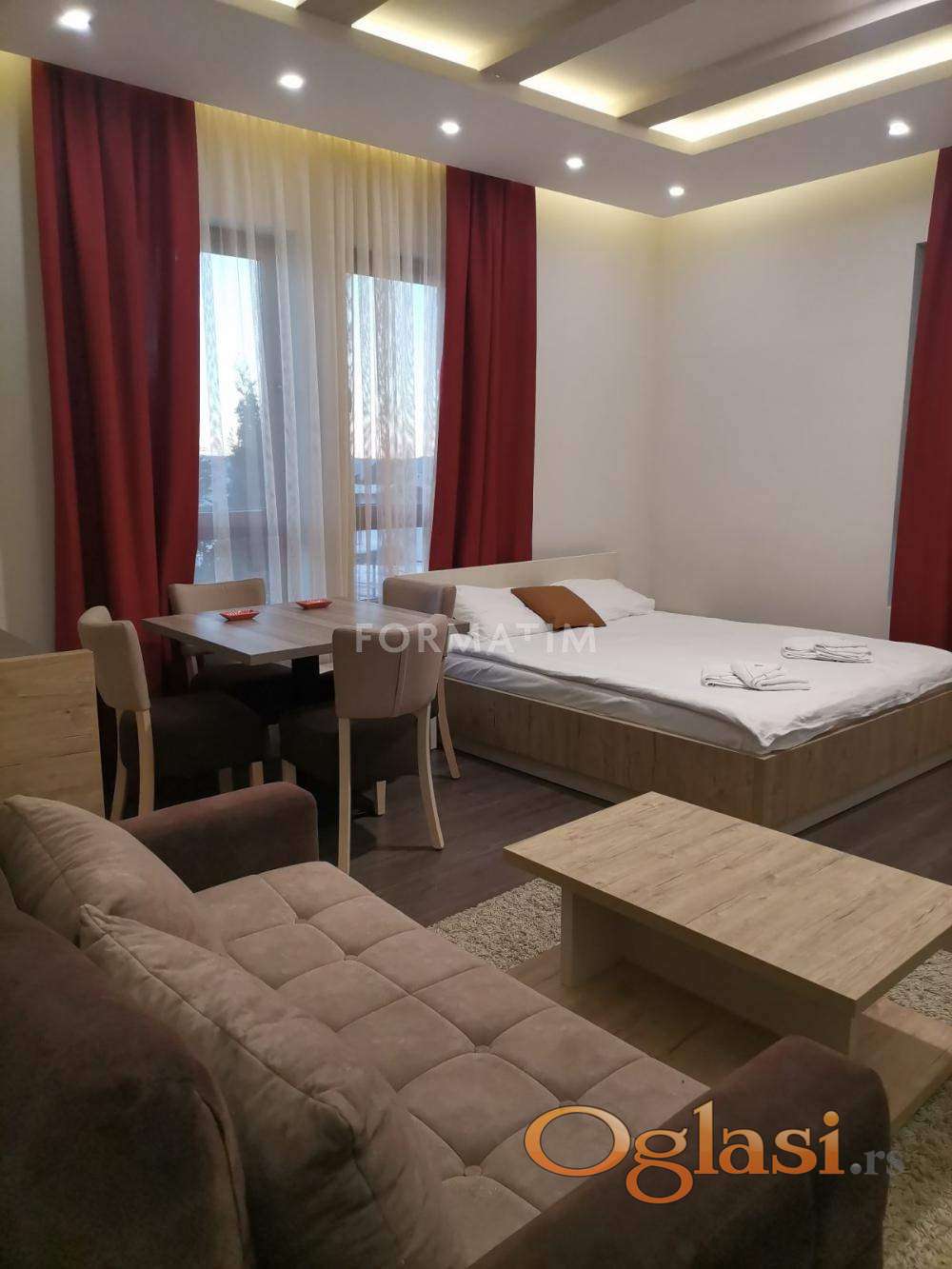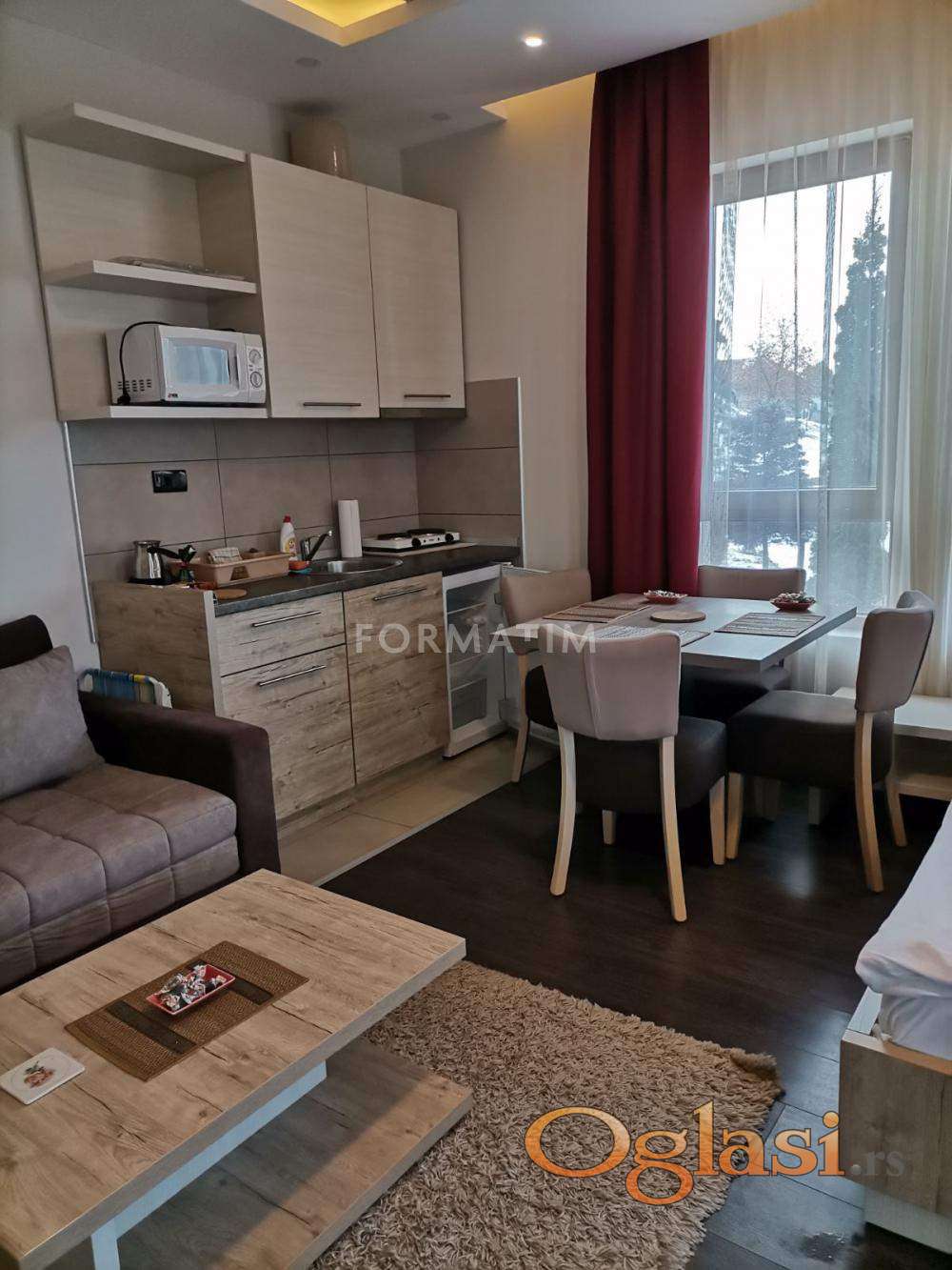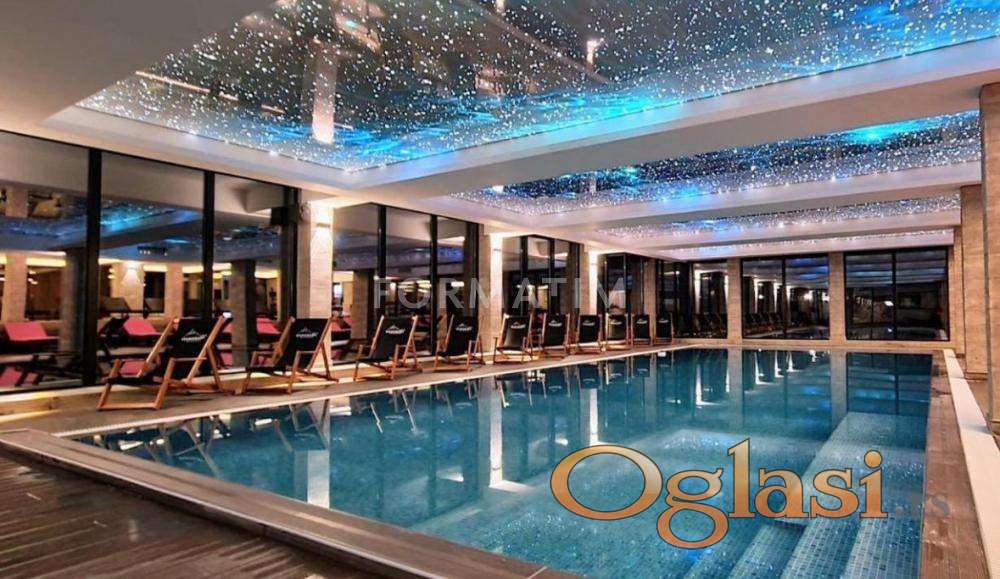 Luksuzan apartman površine 37m² u Vikend naselju. U okviru kompleksa su wellness&spa, dva restorana, dečija igraonica, sportski tereni, tursko kupatilo, sauna, parking , dve recepcije. Preko puta apartmana su prodavnica i kladionica, a u neposrednoj udaljenosti i Maxi objekat. Apartman je udaljen od centra oko 4km.