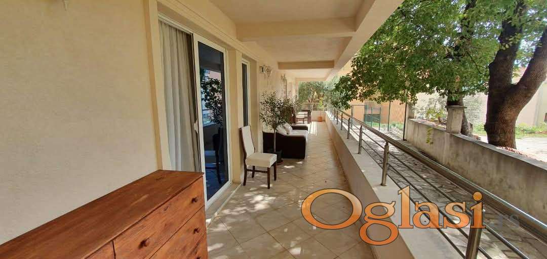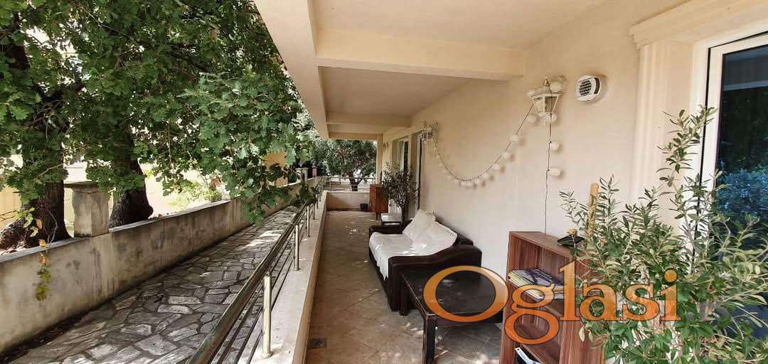 -Terasa 14×2 metra. Izlaz na terasu iz svih prostorija. Na krajevima balkona rastu masline.