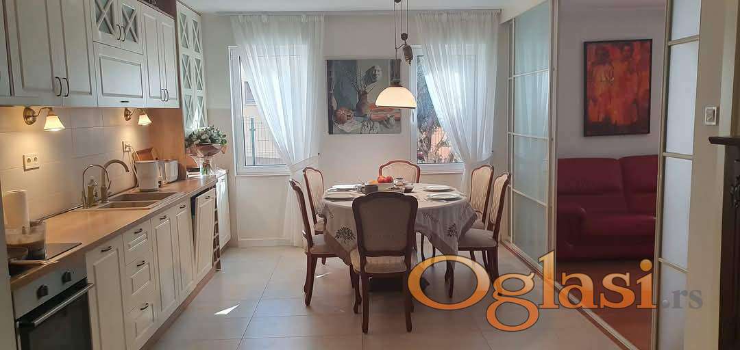 -Kuhinja-blagovaona 25 m2 sa namještajem po mjeri i ugradbenom tehnikom. Topli pod. Perilica posuđa, filteri za piće itd.