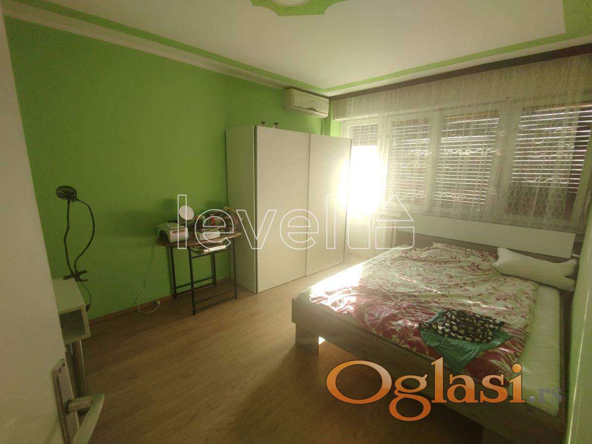 LEVEL PROPERTY, agencija za nekretnine, Vam predstavlja na atraktivnoj lokaciji, u blizini svih potrebnih sadržaja, nudi se dvosoban stan na drugom spratu stambene zgrade. Stan se sastoji od prostranog dnevnog boravka, odvojene kuhinje sa trpezarijom, udobne spavaće sobe i dva mokra čvora. Idealno je rešenje za porodicu ili par koji traži udoban i funkcionalan prostor.Stan je svetao i prijatan, sa odličnim rasporedom prostora. Blizina bulevara omogućava laku dostupnost javnog prevoza, škola, prodavnica i drugih sadržaja.