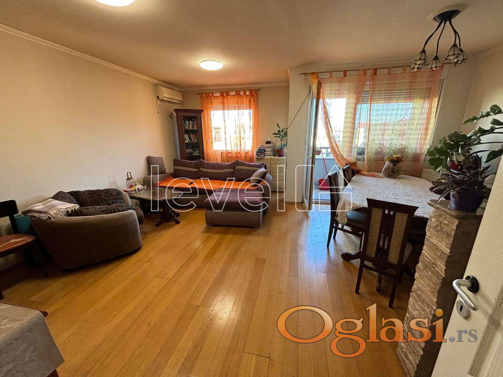 LEVEL PROPERTY, agencija za nekretnine Vam predstavlja odma useljiv stan na četvrtom spratu zgrade sa liftom. Ova nekretnina se sastoji u donjem delu od ulaznog hodnika, prostranog dnevnog boravka sa trpezarijom koji ima izlaz na terasu, kuhinja i kupatilo. Unutrašnjim stepenicama se stiže do gornje etaže gde se nalaze tri spavaće sobe i kupatilo. Stan je sjajno pozicioniran, u blizini svih neophodnih stvari za život, veliki broj marketa, restorana, nekoliko linija gradskog prevoza i slično... Pozovite pa da pogledamo zajedno.