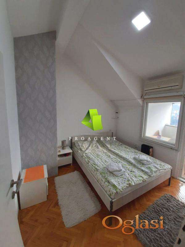 U ponudi je trosoban stan na Paliluli. Stan je ukupne površine 72m2+8m2 ostava, nalazi se na IX spratu zgrade sa liftom. Trenutno je podeljen na dva aprtamana i sastoji se od dve spavaće sobe, dva kupatila , ostave u prizemlju, dnevniog boravka, kuhinje sa trpezarijom i dve terase. Stan je renoviran, na podu je parket, stolarija drvenaprofila, grejanje je etažno (isključen sa centralnog grejanja). Stan je odlična investicija s obzirom da su apartamani pogodni za izdavanje kao stan na dan, postoji mogućnost adaptacije stana u jednu celinu, pa se može koristiti kako za stanovanje tako i za rentiranje. Hvala Vam što ste pogledali oglas. Za više informacija o ovoj ili drugim nekretninama i zakazivanje razgledanja kontaktirajte agenta na broj telefona iz oglasa (poziv, sms, viber) ili putem e-maila. Kompletnu ponudu dostupnih nekretnina možete pronaći na našem sajtu. Agencija Proagent nekretnine je upisana u Registru posrednika pod brojem: 940.