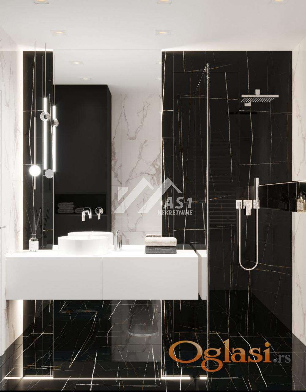 🛁 Premium kupatila: Opremljena prvoklasnim pločicama, Hansgrohe galanterijom, soft-close WC šoljom, i premium lavaboom sa fiokama.