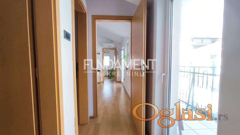 4.0, 126m2, IV/IV, grejanie na struju (CG uvedeno u zgradu i priključak do stana), klima x 4, KATV, internet, PVC i drvena stolarija, terasa, interfon, bez lifta.