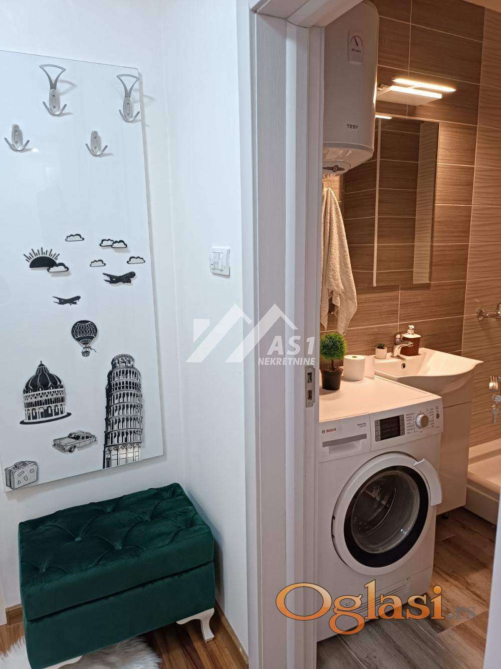 Stan ide sa svim nameštajem. Ima i malu ostavu, grejanje u stanu je na struju..