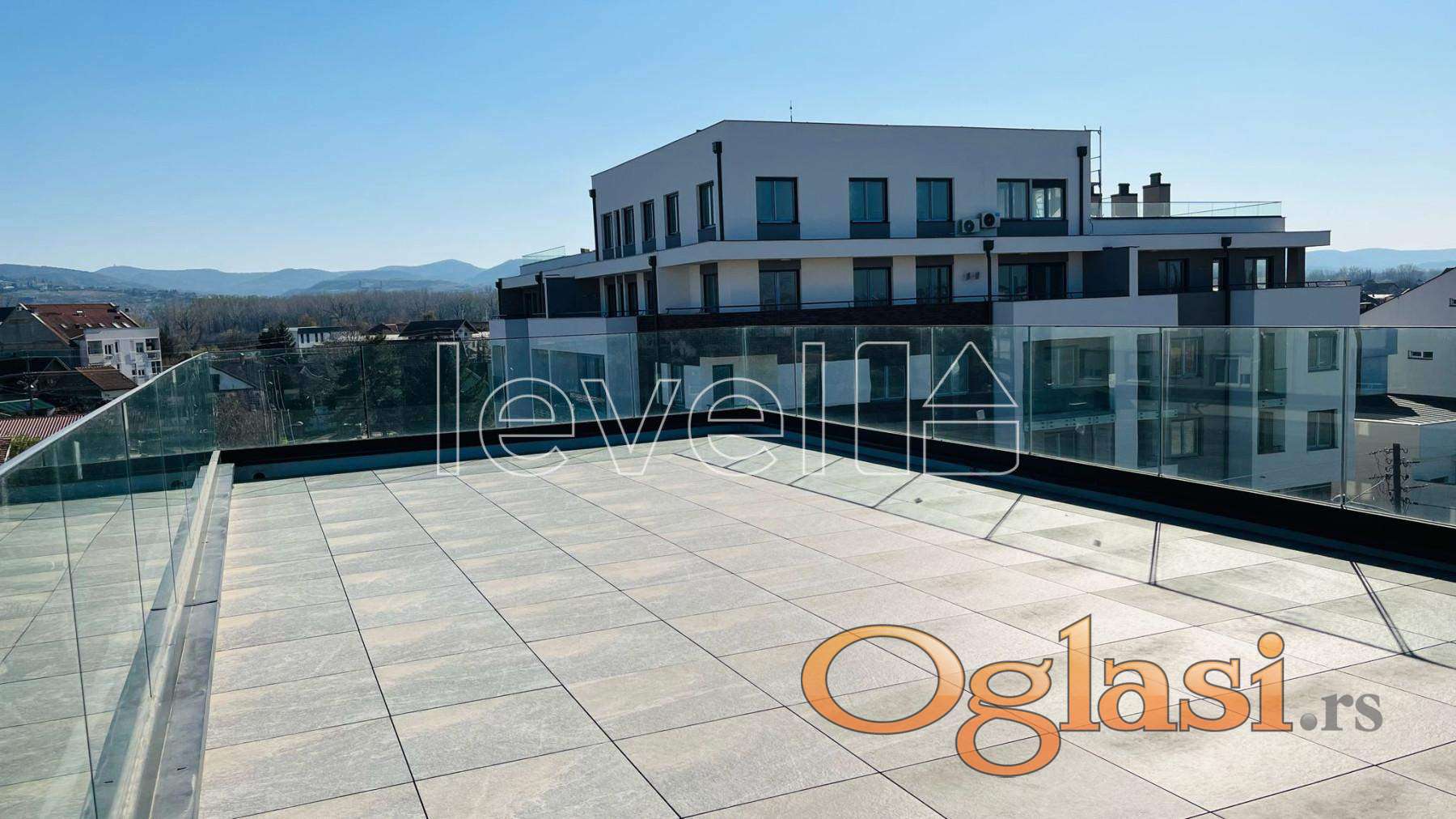 LEVEL PROPERTY, agencija za nekretnine Vam predstavlja fantastičan stan sa krovnom terasom samo za Vas. Ovu zgradu kao i ceo stan odlikuje smart home sistem, moderno, kvalitetno i sa ukusom urađen svaki detalj u njoj. Nekretnina se sastoji od ulaznog hodnika, dnevnog boravka koji je zbog staklenog portala i velikih prozora veoma osvetljen tokom celog dana, kuhinja sa trpezarijom, dve spavaće sobe, moderno kupatilo i ono što posebno želimo da naglasimo je krovna terasa od oko 60m2 koja je samo za Vas i Vašu porodicu i koja ide uz ovaj stan. Grejanje je centralno na gas sa razvedenim podnim grejanjem.