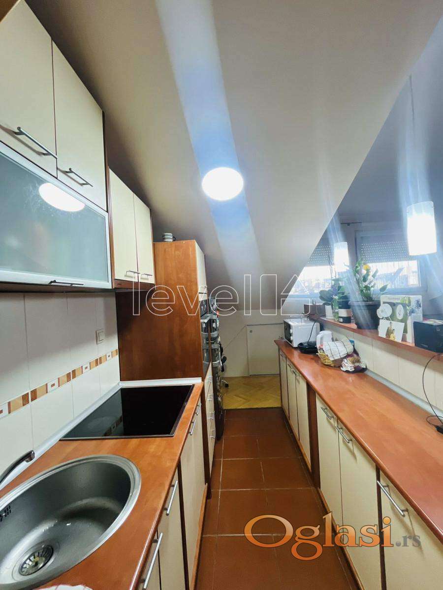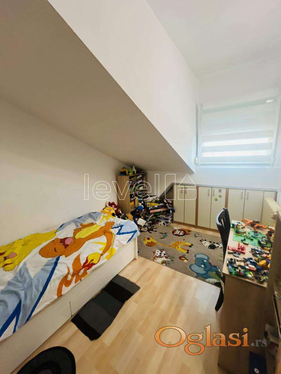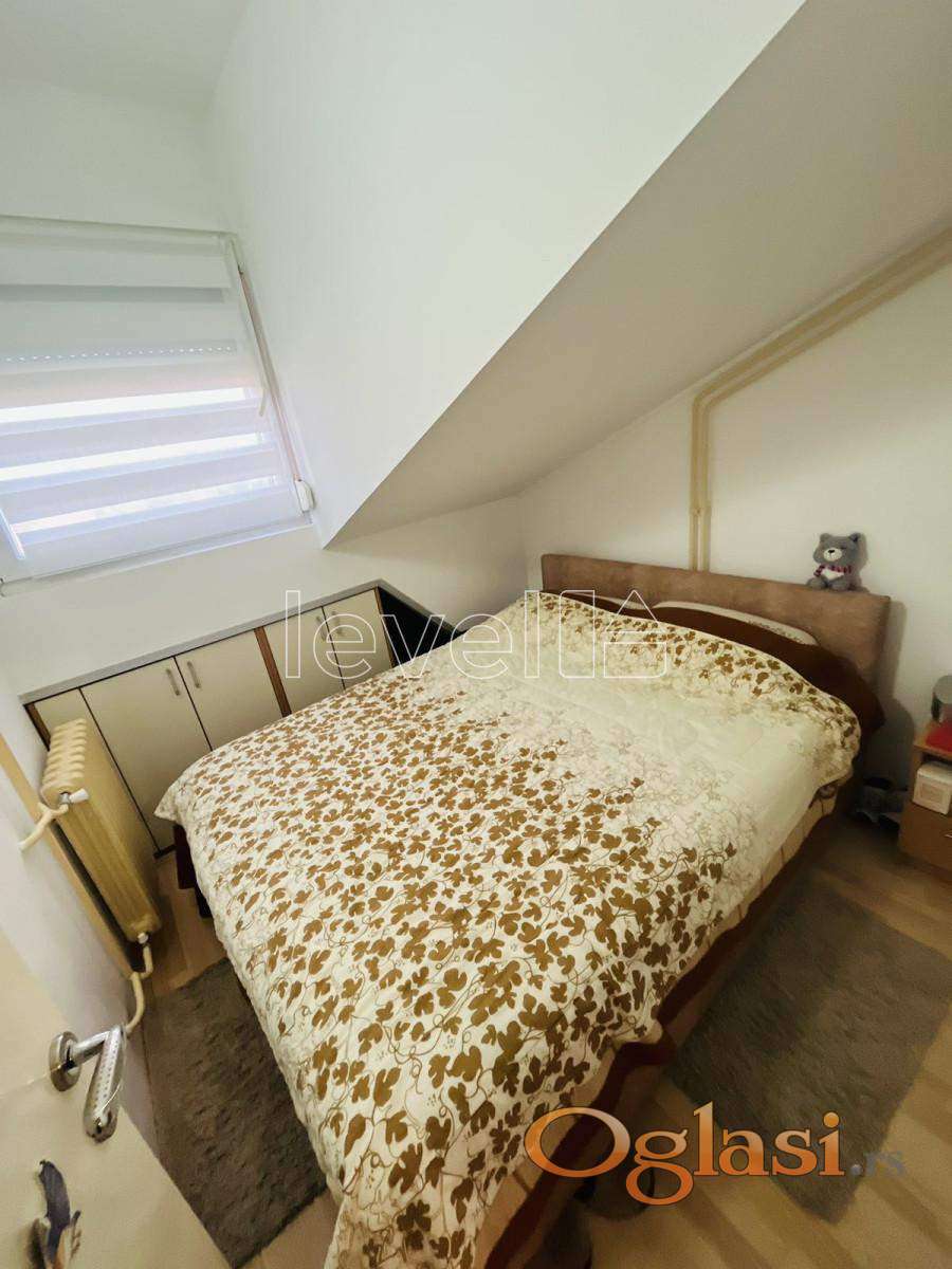 LEVEL PROPERTY, agencija za nekretnine, Vam predstavlja komforan dvoiposoban stan na Novom Naselju koji je uknjižen na 50m2, a ima 73m2 ukupne površine. Nalazi se na 5. spratu u zgradi bez lifta. Orijentisan je ka dvorištu sa puno zelenila i pruža prelep pogled na Frušku goru. Stan se prodaje opremljen. U kosinama su ugrađeni plakari koji pružaju dodatni prostor za odlaganje. Prostor je svetao, funkcionalan i idealan za one koji traže mirno okruženje sa lepim pogledom. Za više informacija i razgledanje, pozovite.