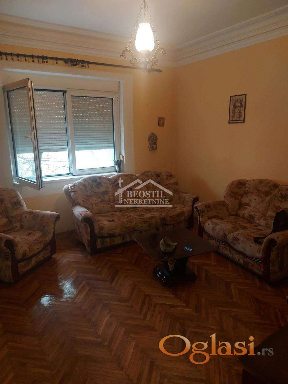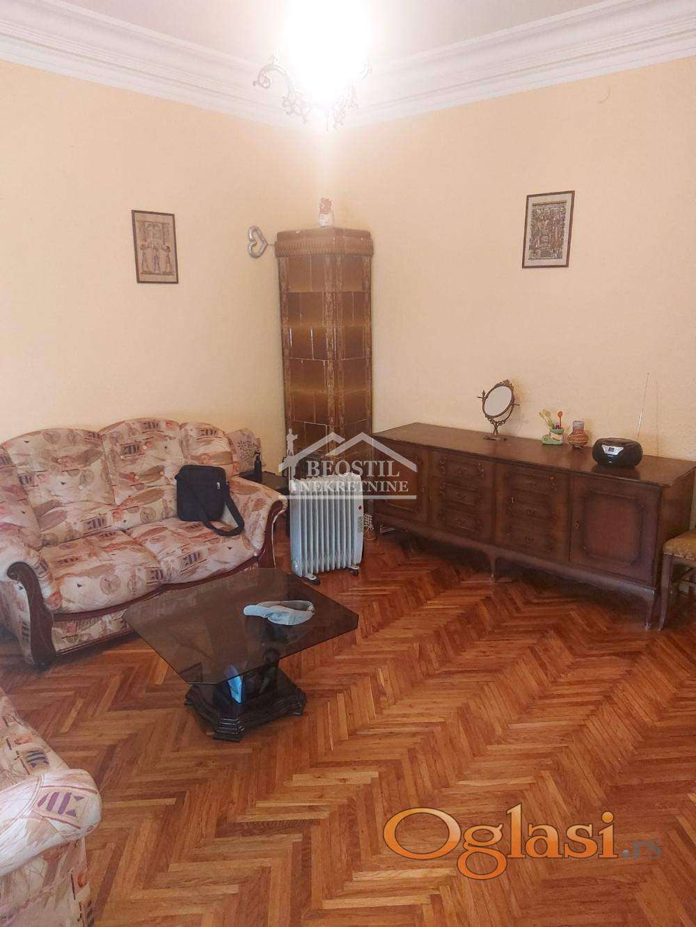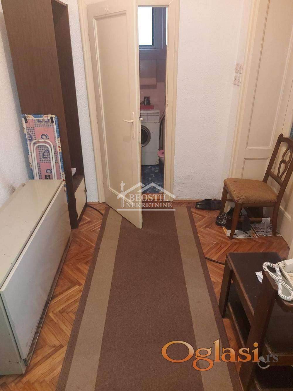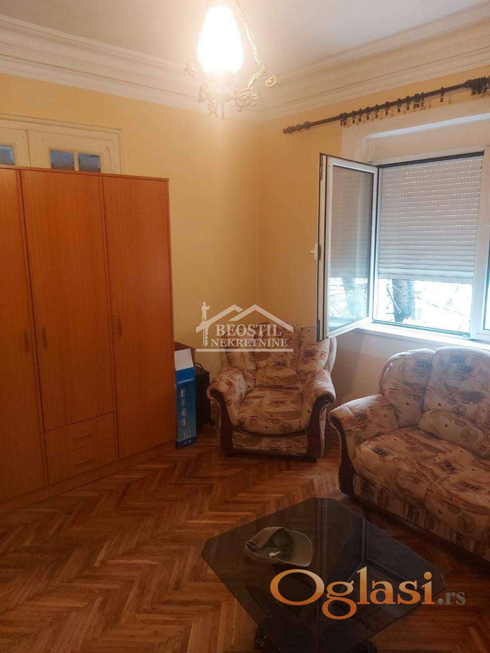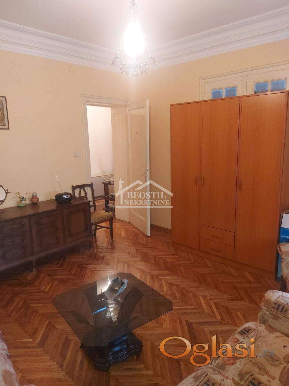 Visina do plafona je 2.9m, dvosoban stan u izvornom stanju sa zamenjenom spoljašnjom stolarijom.