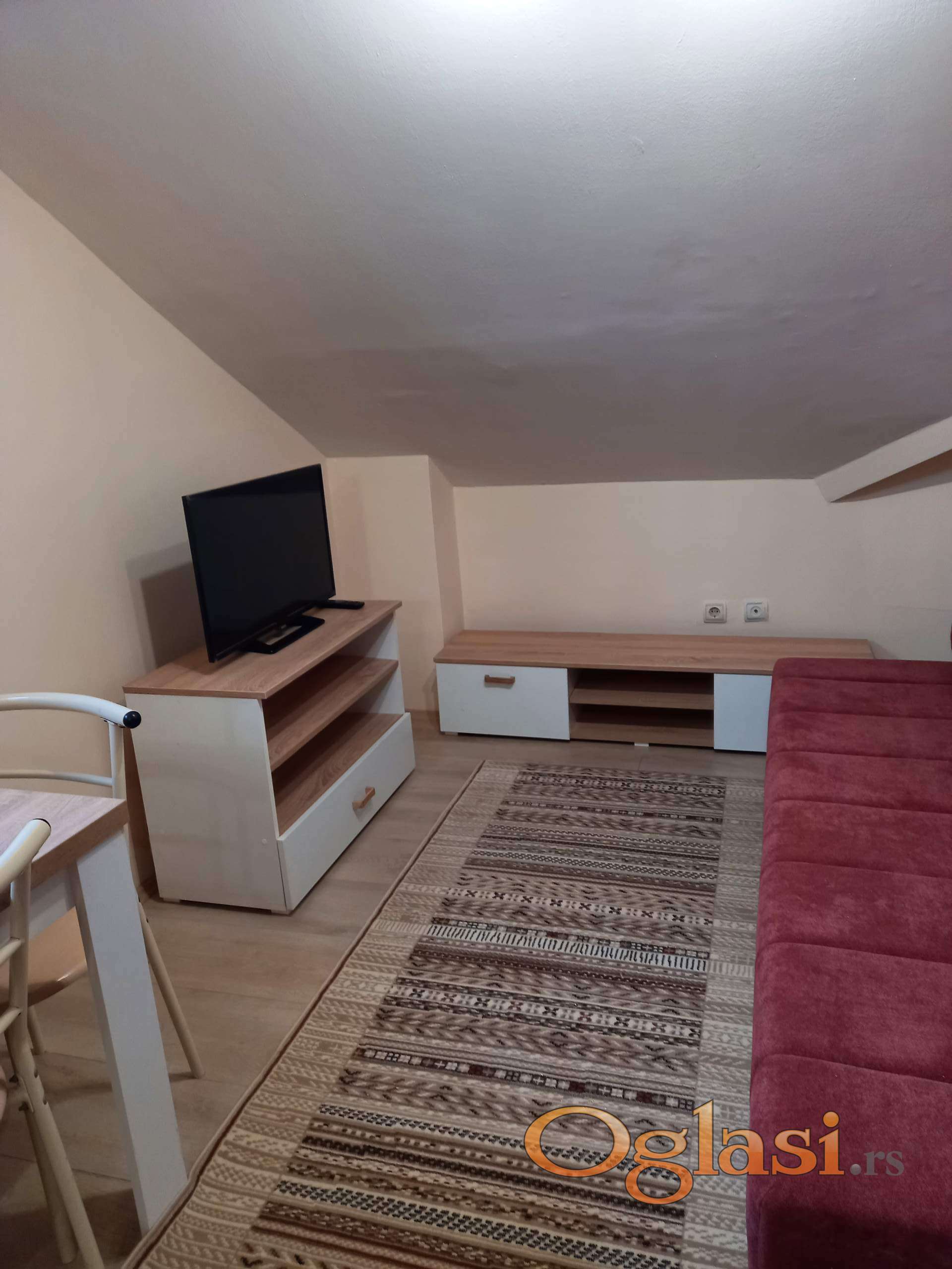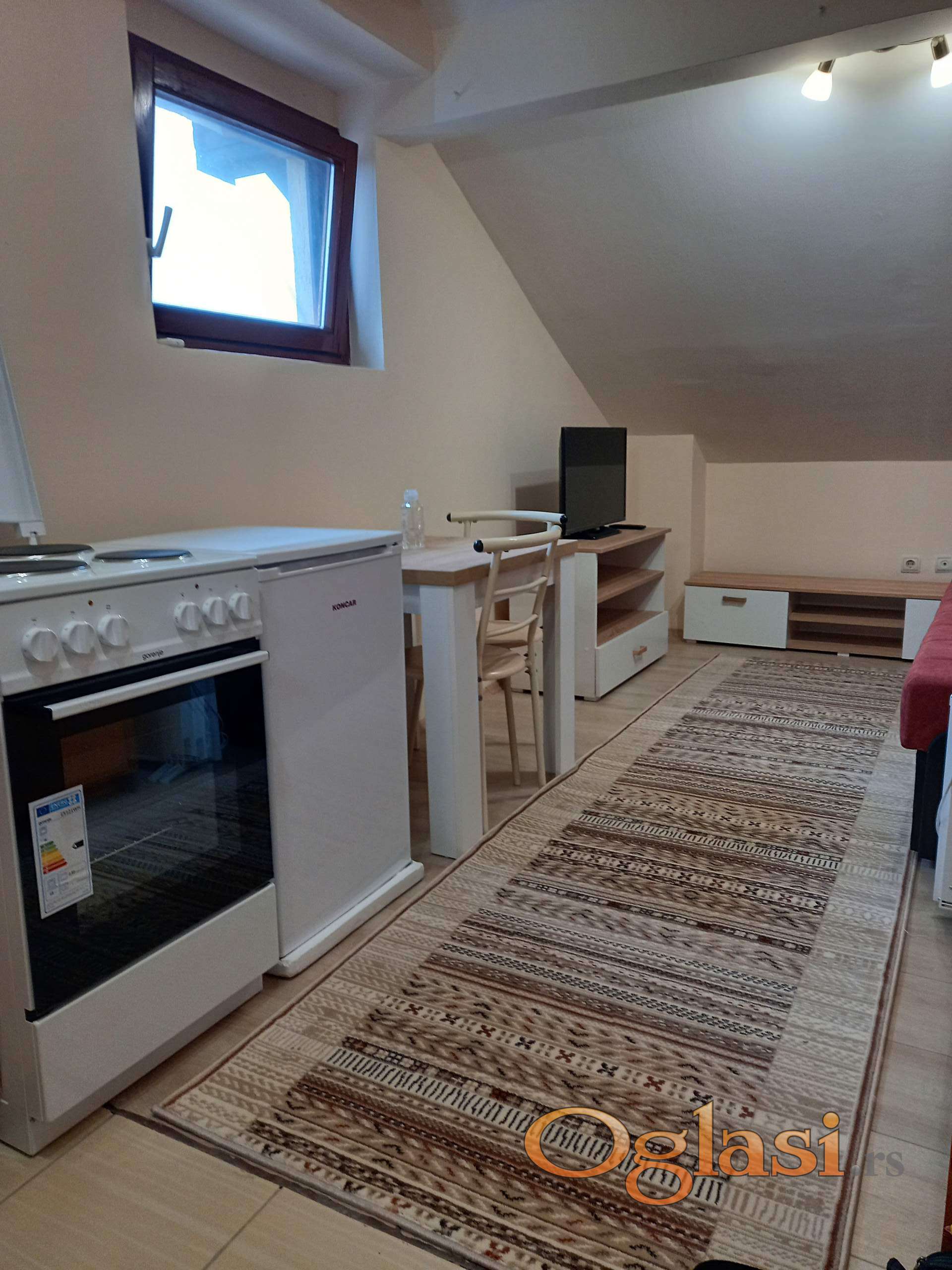 Prodajem uknjizenu, komplet namestenu garsonjeru na pocetku Adica (ul.Branka Copica 9), III sp (potkrovlje), podne povrsine 17 m2. Prosle godine komplet renovirana (izolacija, laminat, plocice..).