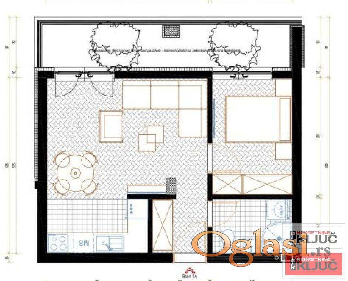 SREMSKA KAMENICA, 37m2, Jednoiposoban sa pdv, Terasa duž stana