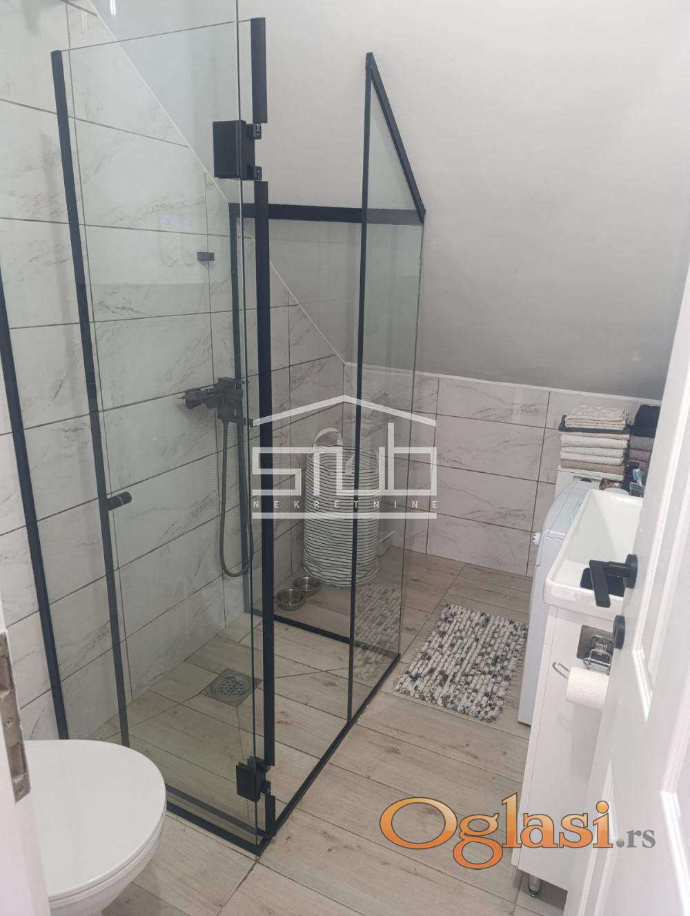 Kupatilo je kompaktno, moderno, sa osnovnim sadržajem i tuš kabinom.