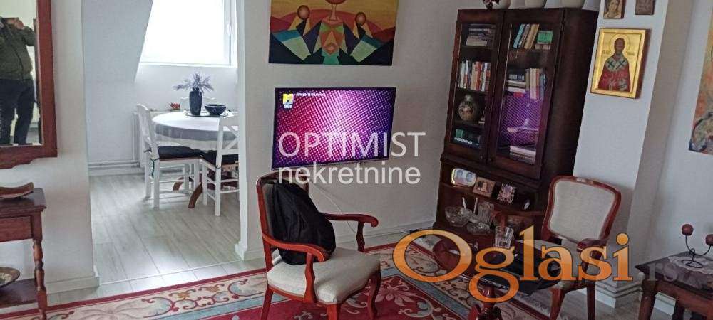 Optimist nekretnine Vam nude kompletno renoviran, trostrano orijentisan (istok-zapad-jug), lep jednoiposoban stan u urednoj i odlično održavanoj kući, u Rakovici, u ulici Majora Omera Mehića bivšoj Mile Dimić, na drugom, poslednjem spratu, uknjižen na 40m² korisnog prostora sa mogućnošću proširenja na potkrovlje površine 23m².