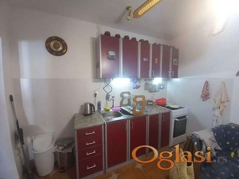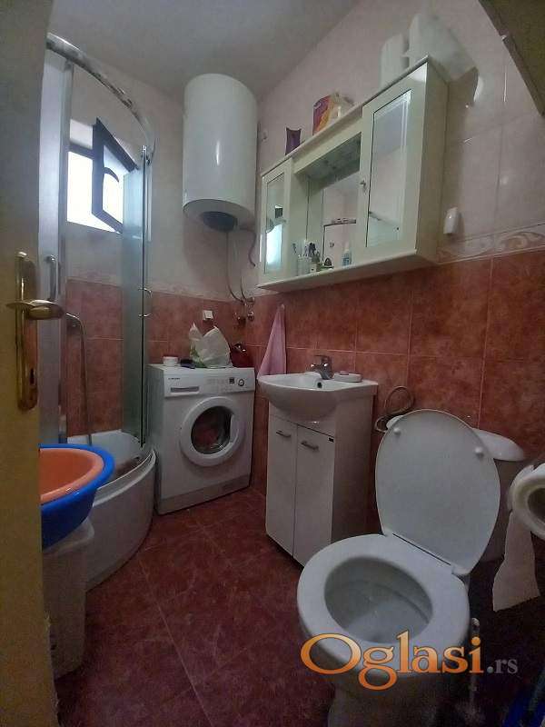Stan je tehnički potpuno opremljen. Poseduje klima-uređaj, frižider, mikrotalasnu rernu i veš-mašinu. Kuhinja je opremljena u potpunosti. Nameštaj je uključen u ponudu, sve prema priloženim slikama. Uz stan se dobija i mali prostor za skladištenje-ostava, odmah naspram ulaznih vrata, ispod stepeništa.