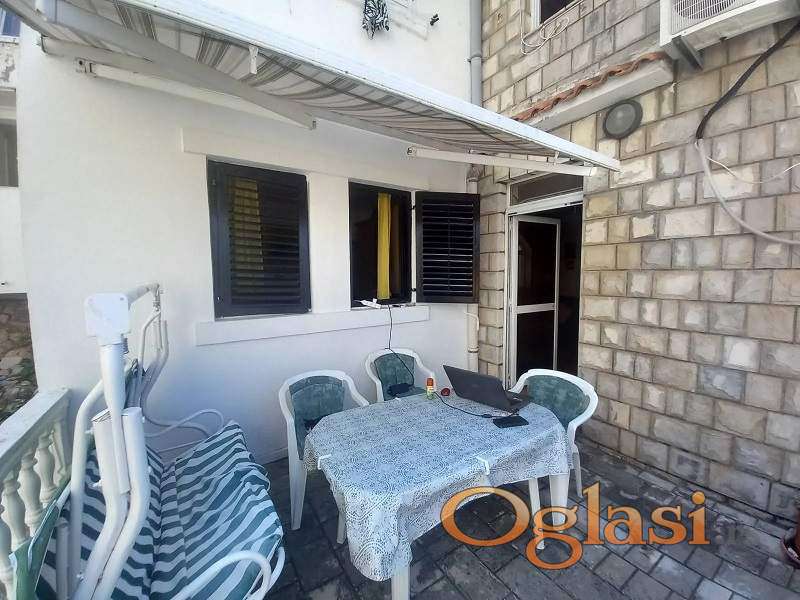 Vlasnik prodaje lep namešten stan na tromeđi Pržno/Miločer/Sv. Stefan, iznad magistrale, u mirnom i idealnom mestu za odmor, sa velikom terasom sa tendom (12 m2), orijentisanom prema moru. Maslinjak je ispod terase, tako da taj deo predstavlja pravu vazdušnu banju. Uknjižen je 1/1. Stan je udaljen 5-10 minuta peške od plaže Kamenovo, jedne od najlepših plaža u Crnoj Gori, 5-10 minuta laganog hoda do Miločera i 10-15 minuta do Rafailovića. Sveti stefan je, takođe na pešačkoj udaljenosti od stana, tako da je lokacija stana praktično centralna između Pržna, Svetog Stefana, Miločera i Rafailovića.