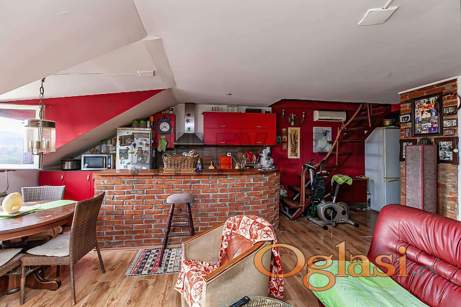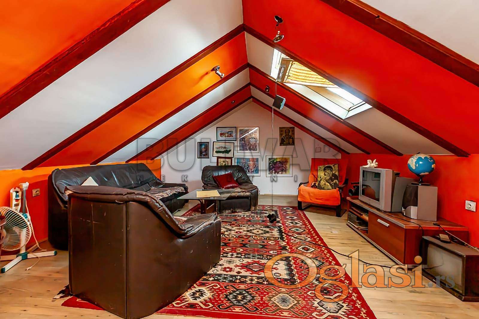 Na prodaju stan na odličnoj lokaciji, DUPLEX, na početku Bulevara Nemanjića, u blizini marketa LIDL, pijace Boško Buha, Doma zdravlja, Delta Planet-a, škola, fakulteta, parka Sveti Sava. Nalazi se u starijoj kvalitetnoj zgradi sa liftom, u nadogradnji, na desetom, zadnjem spratu, (lift ide do VIII sprata) uknjižene površine 86m2. Po strukturi je troiposobni, sastoji se od dnevnog degažmana: dnevne sobe sa kuhinjom i trpezarijom i jedne sobe za dnevni odmor .Na sledećem, višem nivou je galerija i spavaći degažman, sastoji se od dve spavaće sobe i kupatila. U stanu je isključeno centralno grejanje sa mogućnošću ponovnog priključka, na podu je laminat, stolarija drvena, prozori krovni, VELUX na gornjem nivou, na donjem kombinacija krovnih i standardnih prozora. Krov je urađen od termo lima. Parking postoji u dvorištu zgrade. Stan je u izvornom stanju, zahteva izvesna ulaganja. Uknjižen kao duplex, državina. Za više informacija slobodno pozovite.