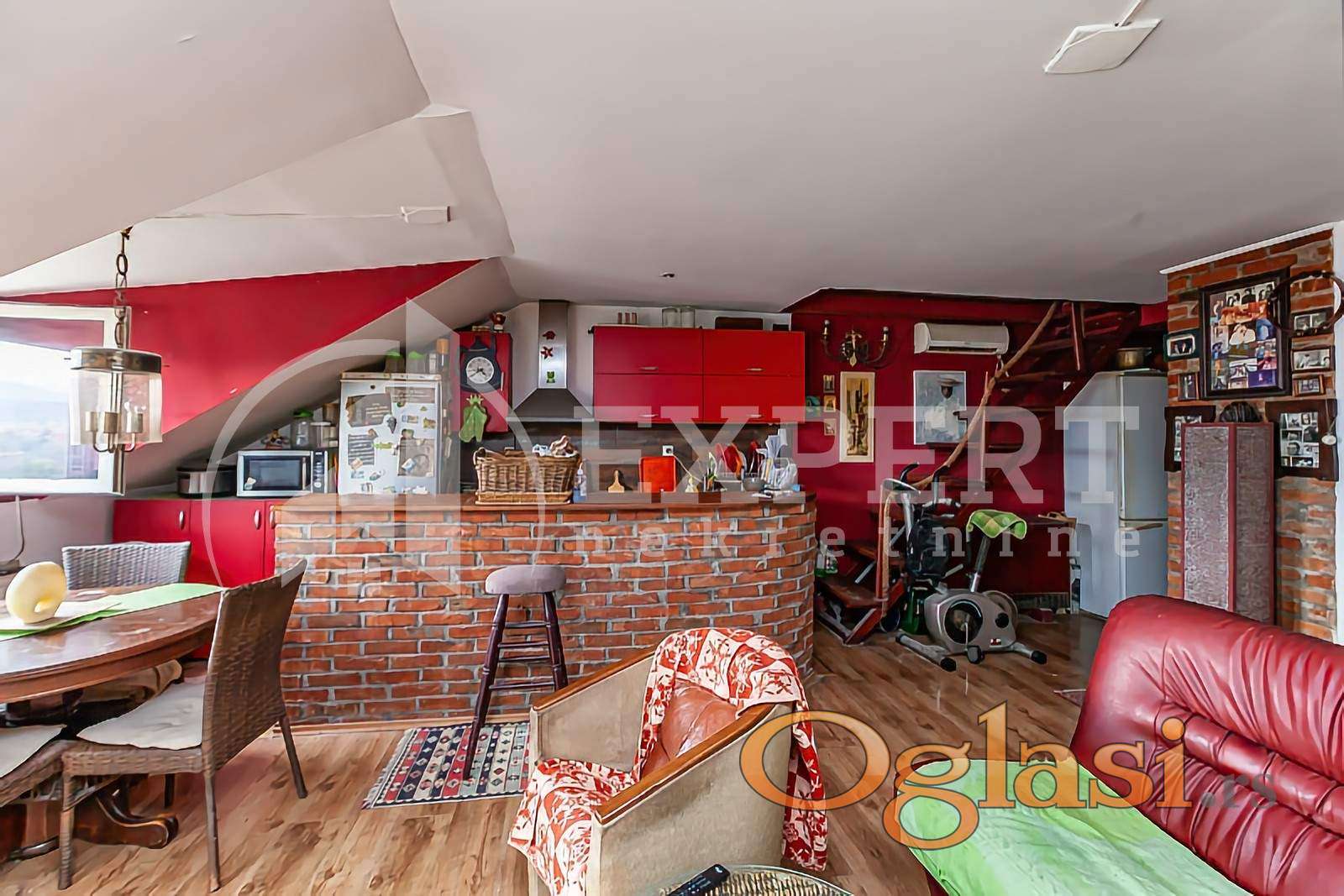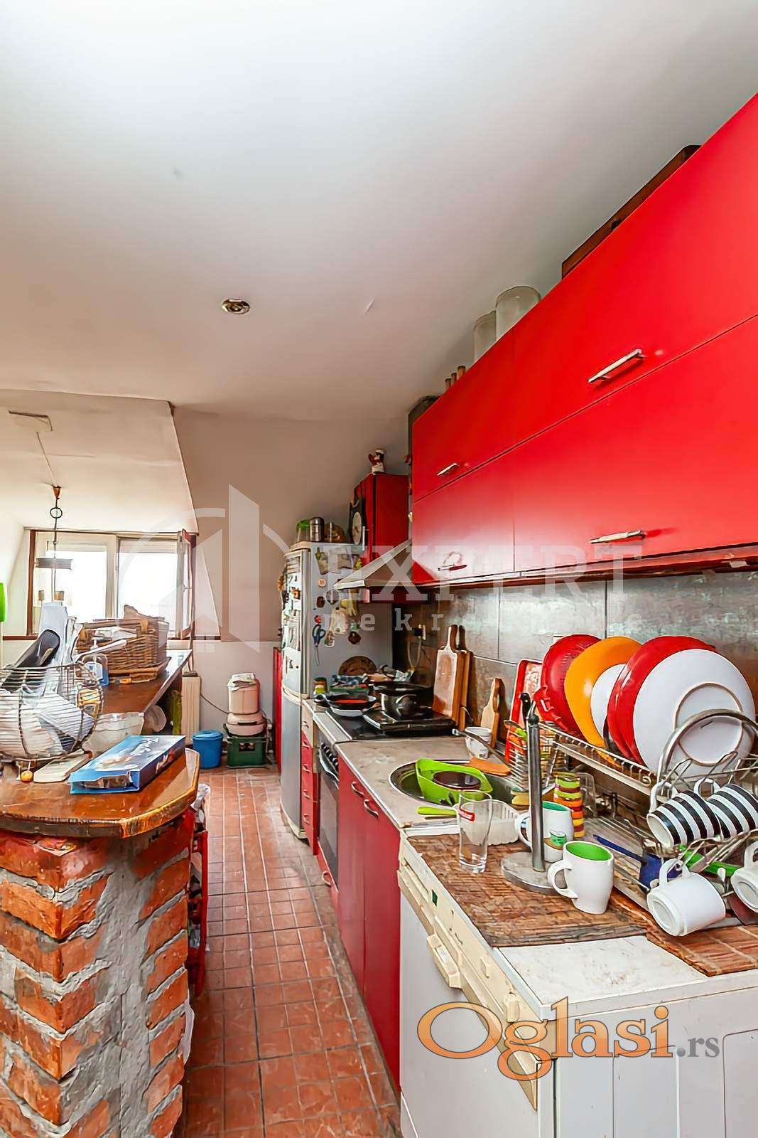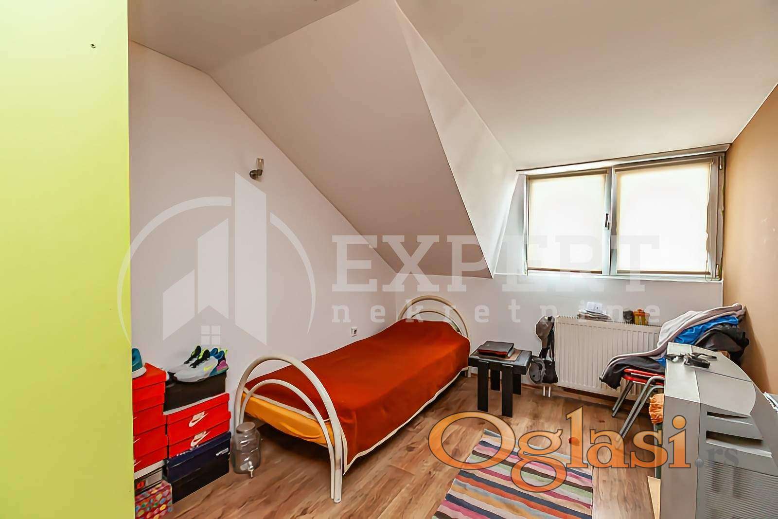Na prodaju stan na odličnoj lokaciji, DUPLEX, na početku Bulevara Nemanjića, u blizini marketa LIDL, pijace Boško Buha, Doma zdravlja, Delta Planet-a, škola, fakulteta, parka Sveti Sava. Nalazi se u starijoj kvalitetnoj zgradi sa liftom, u nadogradnji, na desetom, zadnjem spratu, (lift ide do VIII sprata) uknjižene površine 86m2. Po strukturi je troiposobni, sastoji se od dnevnog degažmana: dnevne sobe sa kuhinjom i trpezarijom i jedne sobe za dnevni odmor .Na sledećem, višem nivou je galerija i spavaći degažman, sastoji se od dve spavaće sobe i kupatila. U stanu je isključeno centralno grejanje sa mogućnošću ponovnog priključka, na podu je laminat, stolarija drvena, prozori krovni, VELUX na gornjem nivou, na donjem kombinacija krovnih i standardnih prozora. Krov je urađen od termo lima. Parking postoji u dvorištu zgrade. Stan je u izvornom stanju, zahteva izvesna ulaganja. Uknjižen kao duplex, državina. Za više informacija slobodno pozovite.