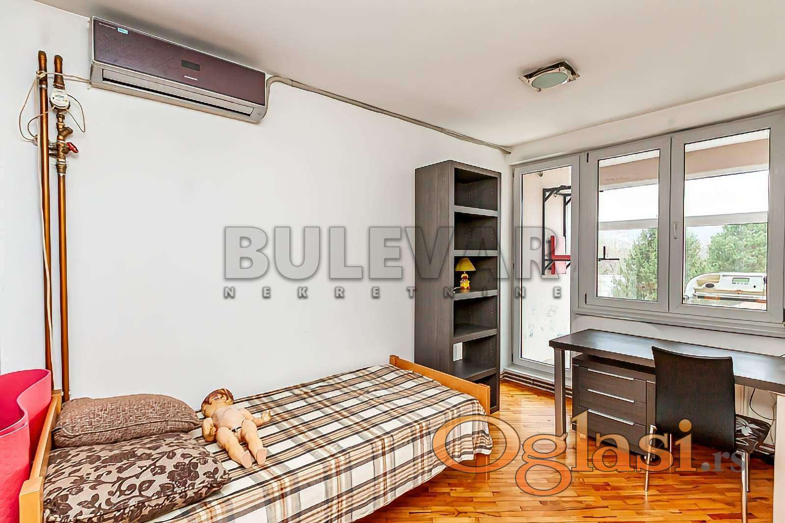 Na prodaju četvorososoban stan na lepoj, mirnoj lokaciji kako za stanovanje, tako za izdavanje. Stan se nalazi odmah do Svetosavskog parka, Osnovne škole, vrtića, na par minuta od TC Roda, 5 minuta do Delta Planeta...