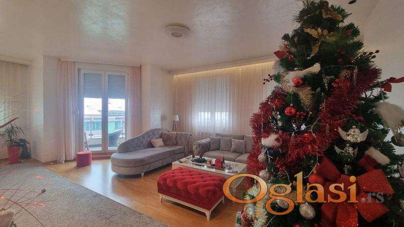 Komfornost koju možete samo da osetite prilikom života u ovom modernom stanu! Četvorosoban po strukturi, dva sanitarna čvora, kuhinja odvojena sa prirodnom ventilacijom, fantastičan dnevni boravak, dvostrano orjentisan okupan svetlošću! Pripadajuća krovna terasa sa predivnim pogledom ka Fruškoj gori pretvara se u dnevni boravak na otvorenom tom letnjih meseci. Prilikom gradnje na terasu su izvučene sve neophodne instalacije (voda, struja), a odrađena je i dodatna hidro izolacija, tako da postoji mogućnost pravljenja mini bara, bašte... Po ukusu budućeg kupca. Grejna površina 148m2, plus gornja terasa 116m2! Stan takođe krase visoki plafoni kao u salonskim stanovima što se retko viđa u novogradnji. Prodaje se kompletno namešten sa belom tehnikom. U cenu je uračunato jedno garažno mesto, koje se nalazi u suterenu zgrade i uknjiženo je 1/1. U jednom od najlepših delova grada, nadomak Bulevara Evrope i novog parka na Naselju nalazi se ovaj fantastičan stan. Potpuno nova zgrada, dva lifta, vrhunska oprema. Za više informacija ili da zakažete gledanje stana, možete kontaktirati naše agente! 064 8222 148
