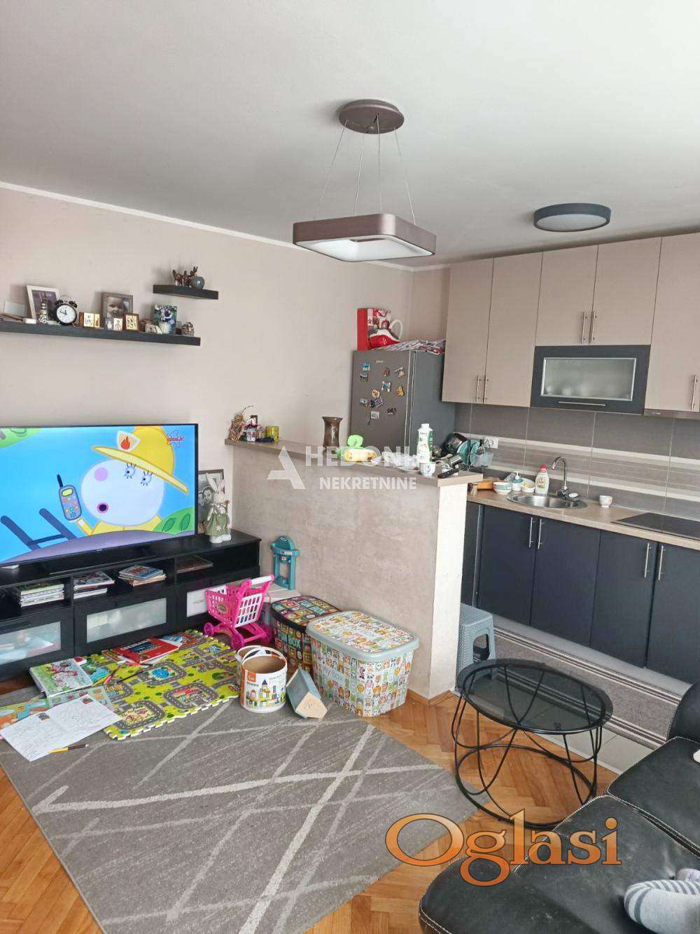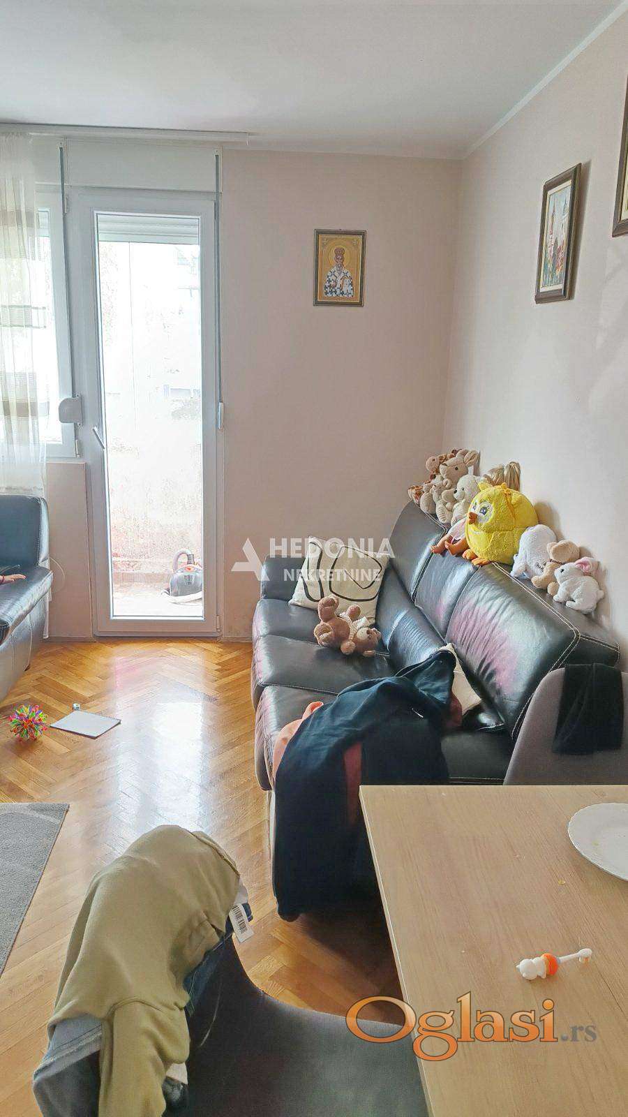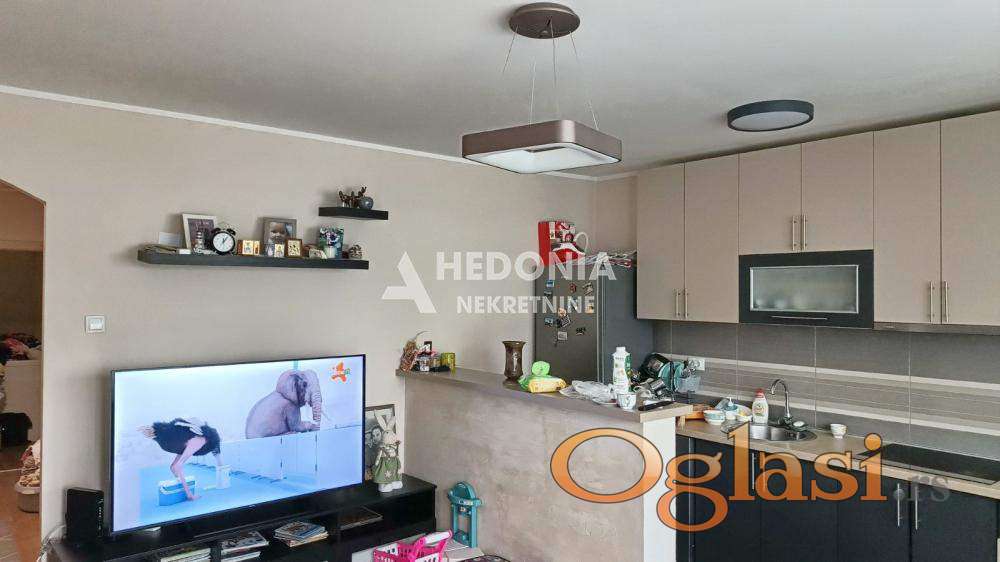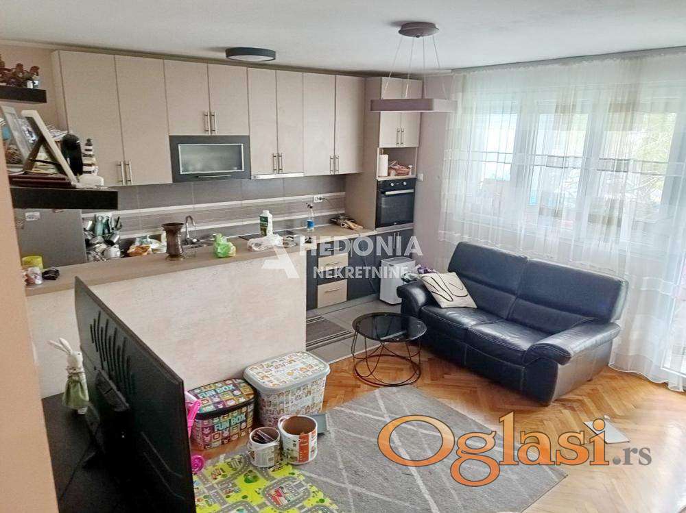U centru Zemun polja, u ulici sa dosta zelenila i manjih parkova, nalazi se ovaj dvoiposoban stan. Smešten je na visokom prizemlju u urednoj i održavanoj zgradi. U neposrednoj blizini su pijaca, pošta, Maksi, škola, obdanište i svi ostali neophodni sadržaji za stanovanje. Saobraćajna povezanost sa ostalim delovima grada je dobra. Stan je po strukturi izvorno dvosoban, uspešno adaptiran u dvoiposoban. Kompletno je renoviran i sastoji se iz ulaznog hodnika, dnevnog boravka sa kuhinjsko trpezarijskim delom, dve spavaće sobe, zatvorene lođe i kupatila. Uknjižen je i bez ulaganja. Za preporuku!