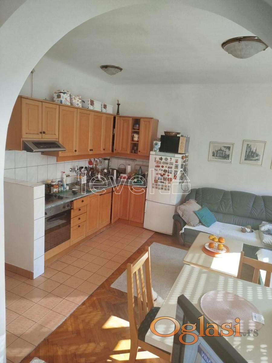 Sastav: Prostrana kuhinja sa trpezarijom spojena sa dnevnim boravkom koji izlazi na lep, prostran balkon