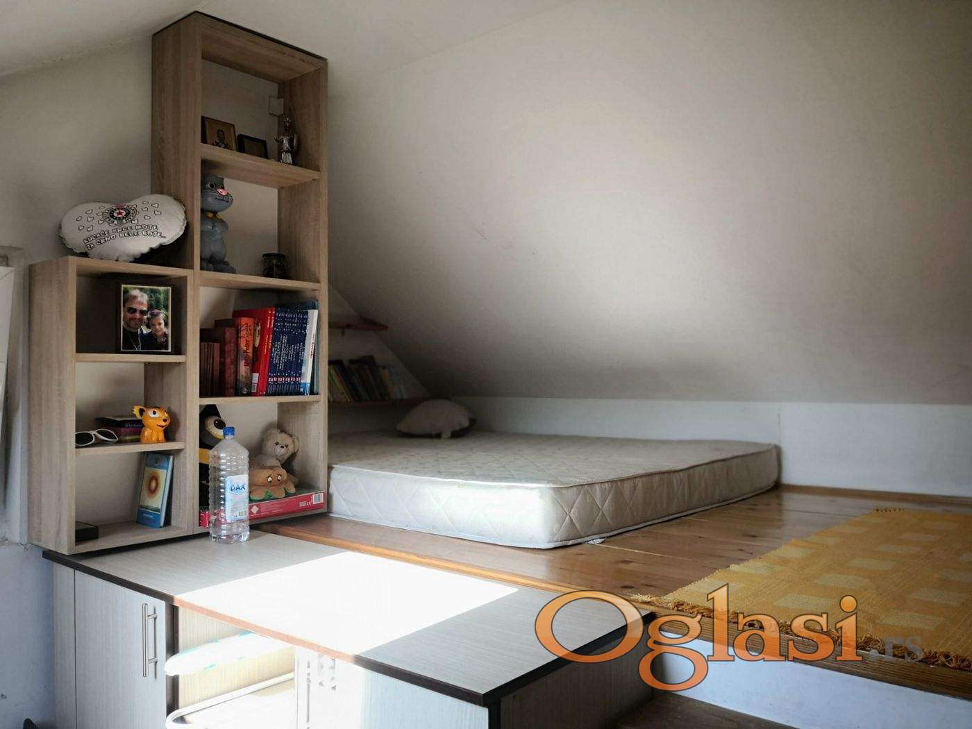 Uknjižen na 86m2 u stvarnosti oko 120m2. Gornja etaža nije kompletna ušla u kvadraturu. Kombinacija krovnih i redovnih prozora. Konforne spavaće sobe u donjoj etaži a u gornjoj odličan prostor sa galerijama na kojima je spavaći deo. Nekretnina na odličnoj lokaciji - blizina centra grada, škola, marketa i vrtića..mirna ulica.
