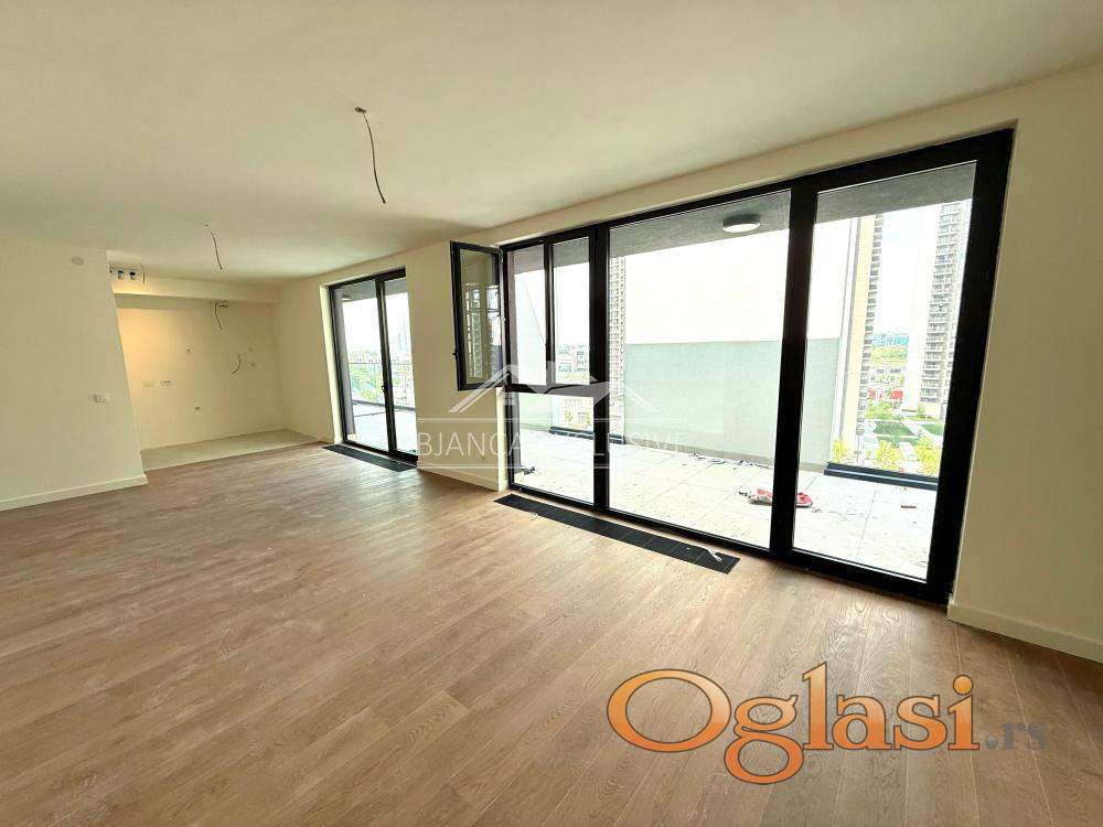 Na prodaju ekskluzivan stan u prestižnom kompleksu Beograd na vodi, smešten na osmom spratu moderne zgrade sa pogledom koji oduzima dah. Stan ima ukupnu površinu od 238m², od čega je čak 42m² terasa – idealna za uživanje i relaksaciju.