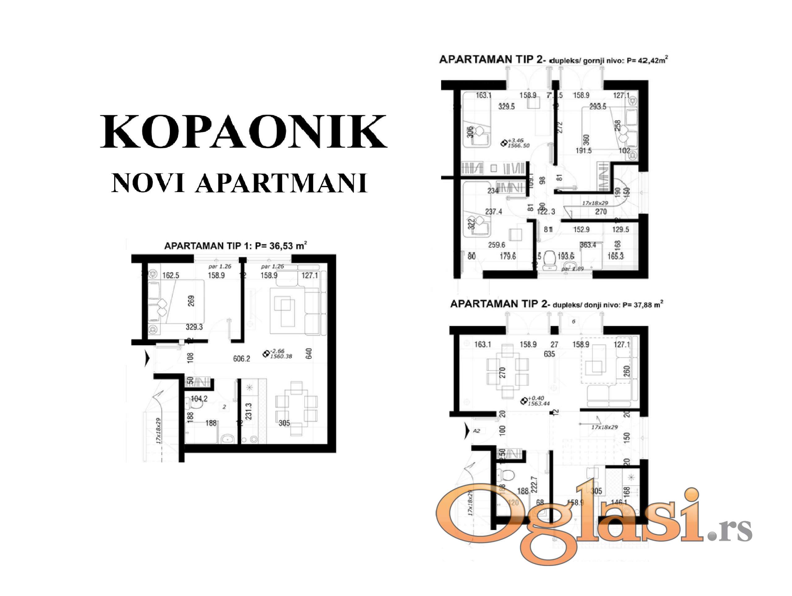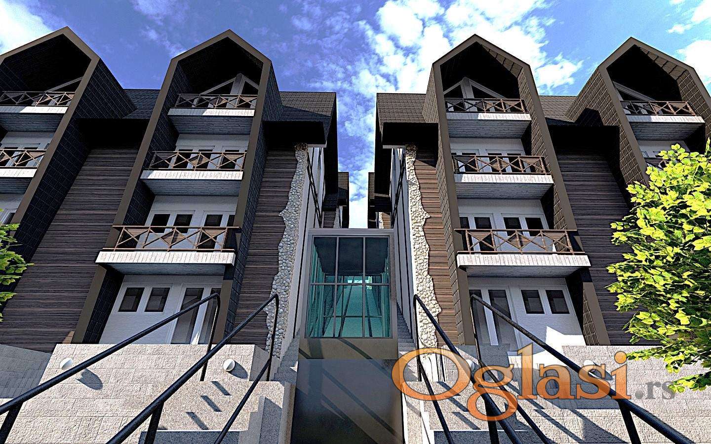 Kopaonik, odmah useljivi novi apartmani sa super pogledom, povezani ski liftom sa stazama u centru .. / naselje Treska, na 1600m nadmorske visine, apartmani pogodni za zimski i letnji turizam, komplet opremljeni sa nameštajem i tehnikom, kablovska, internet, wi-fi, televizor, kuhinja, frižider, hidromasažna kupatila, norveški radijatori, terase, parkinzi, objekat je povezan sa ski stazama u centru (ski lift br.5); trenutno je na raspolaganju 2 tipa apartmana, 2.0 40m2 (36,53+T) (jedna spavaća soba), i dplx 4.0 82m2 (37,88+42,42+T) (tri spavaće sobe), cena je 2.200 e/m2 za komplet namešten apartman a 2.000 e/m2 za nenamešten ..