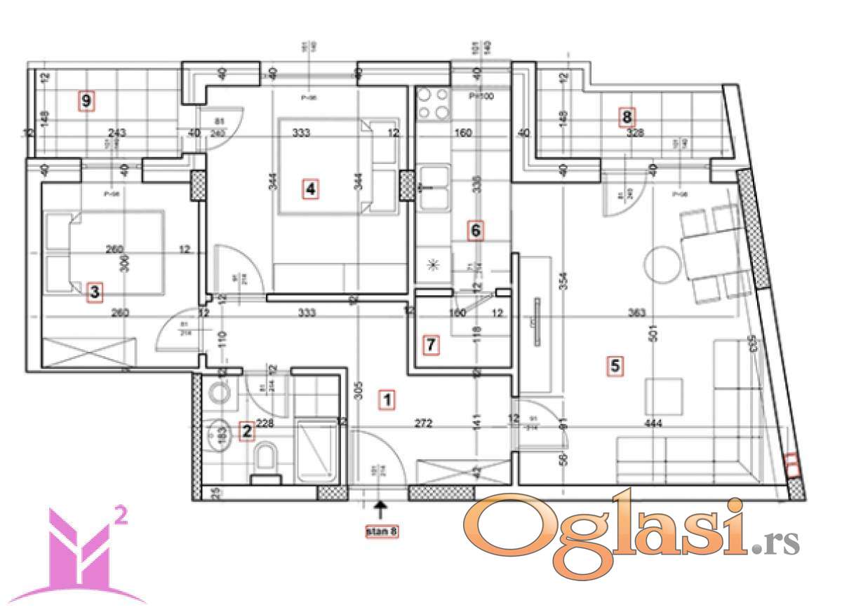 Stan je odličnog rasporeda, iz hodnika se ulazi u sve prostorije.