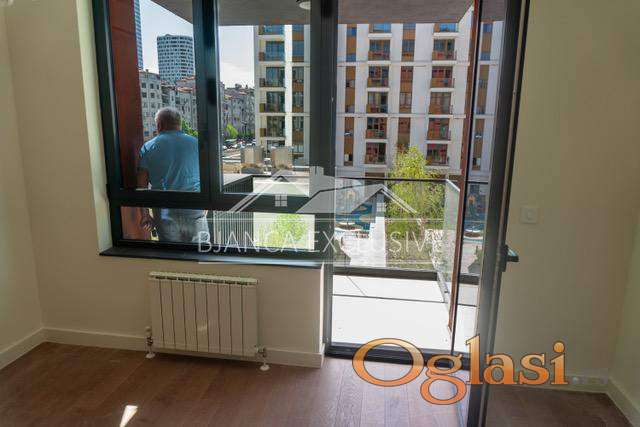 U ponudi je izuzetan dvosoban stan površine 58m², koji se nalazi na drugom spratu savremene zgrade u prestižnom kompleksu Beograd na vodi. Stan je pažljivo dizajniran i funkcionalno raspoređen – sastoji se od prostranog dnevnog boravka sa kuhinjom i trpezarijom, spavaće sobe, kupatila i prelepe terase koja pruža dodatni ugođaj za boravak na otvorenom.
