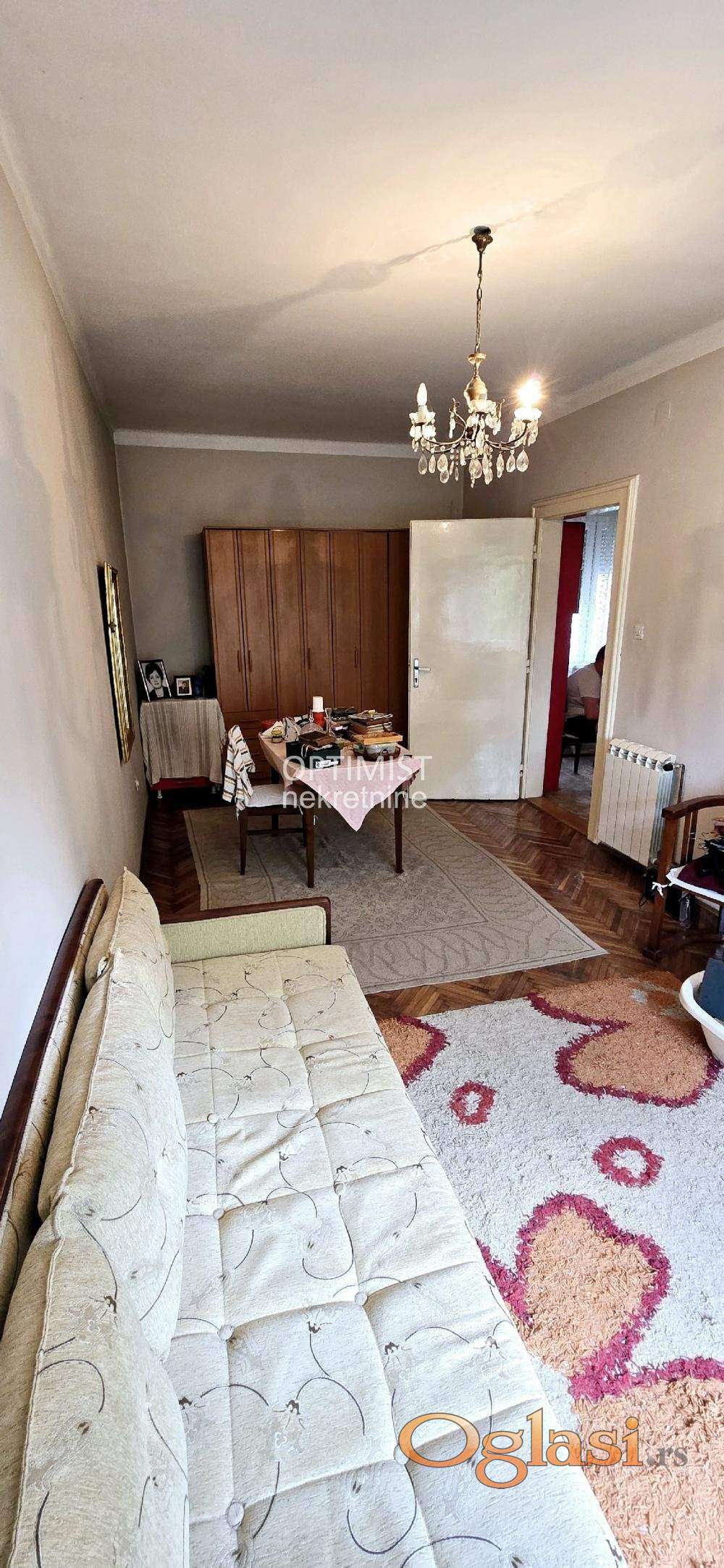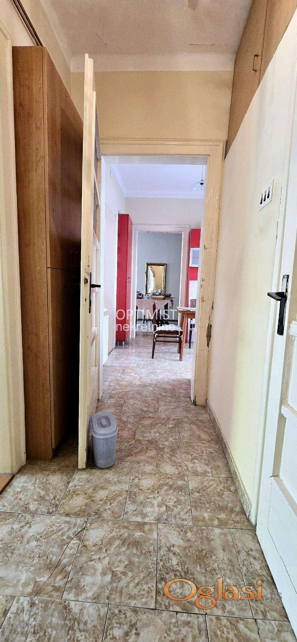 Optimist nekretnine vam nude odličan trosoban salonac na prvom spratu stambene zgrade od ukupno četiri. Stan je izuzetno svetao i tih, orijentisan ka dvorištu. U sve prostorije se ulazi iz hodnika, adaptiran na više načina po želji budućeg kupca. Prostorije: -hodnik, -dnevna soba, -dve spavaće sobe, -kuhinja sa trpezarijom, -kupatilo. Idealan kako za stanovanje, tako i za poslovni prostor. Nalazi se u blizinu svih potrebnih infrastruktutra za udoban i miran život. Hvala što ste odvojili vreme za naš oglas! Agencijska provizija 2%