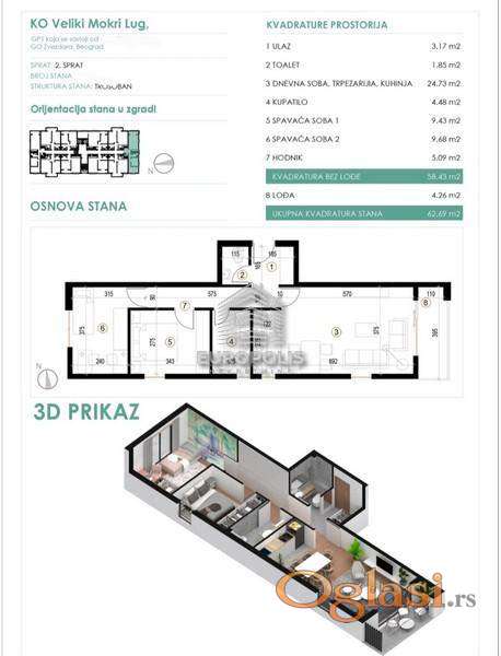 Odličan raspored, stan sa dve spavaće sobe ID#7534