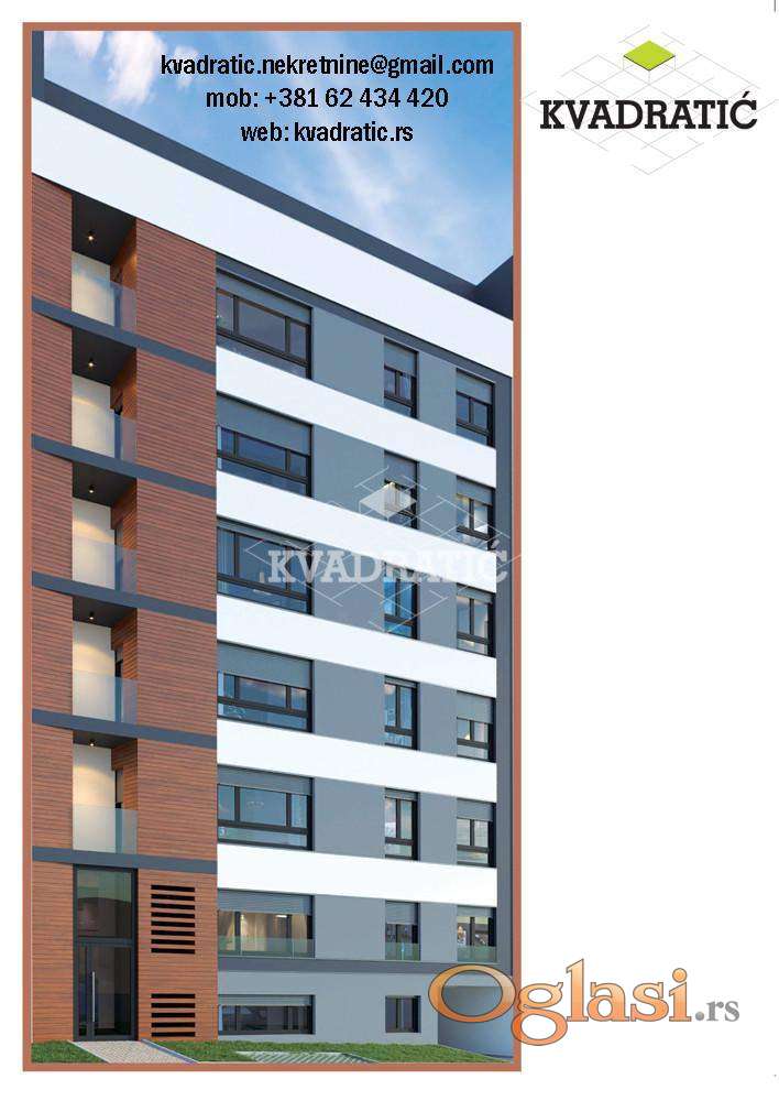 Na povučenom spratu moderne zgrade s ukupno sedam spratova, nalazi se ovaj elegantni troiposoban stan u u završnoj fazi gradnje.