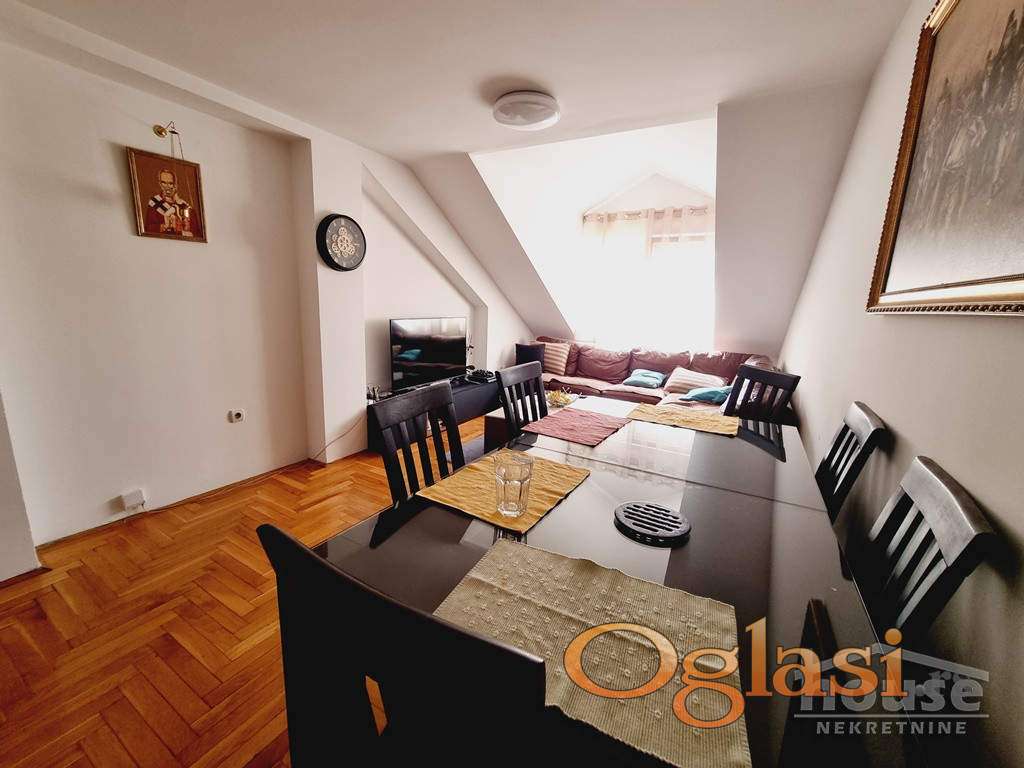 Oglašavamo prodaju četvoroiposobnog dupleksa u novijoj zgradi na odličnoj lokaciji. Kvalitetna gradnja. Stan ima 120m2, ali je uknjižen na 87m2 zbog kosina. U prvom nivou komotan dnevni boravak, kuhinja, degažmanom odvojene dve spavaće sobe, kupatilo, garedober. U potkrovlju velik as oba koja se može pregraditi u dve, kupatilo, i mnogo iskorištenog prostora u kosinama.Odlično iskorišćen prostor sa ugradnim plakarima. Pogodan za višečlane porodice. Kontakt osoba Ljiljana Knežević 0613195394