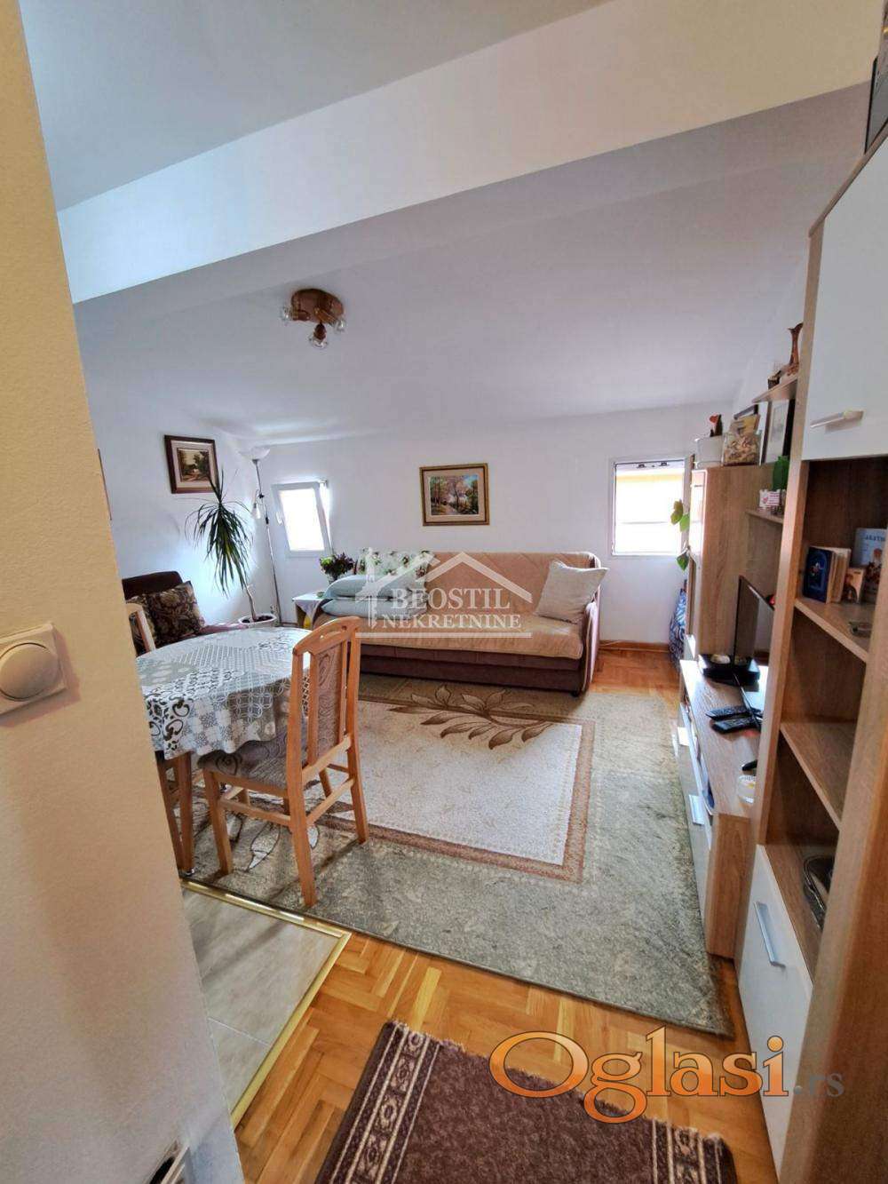 Prostorije: hodnik, dnevno-kuhinjsko-trpezarijski deo i kupatilo.